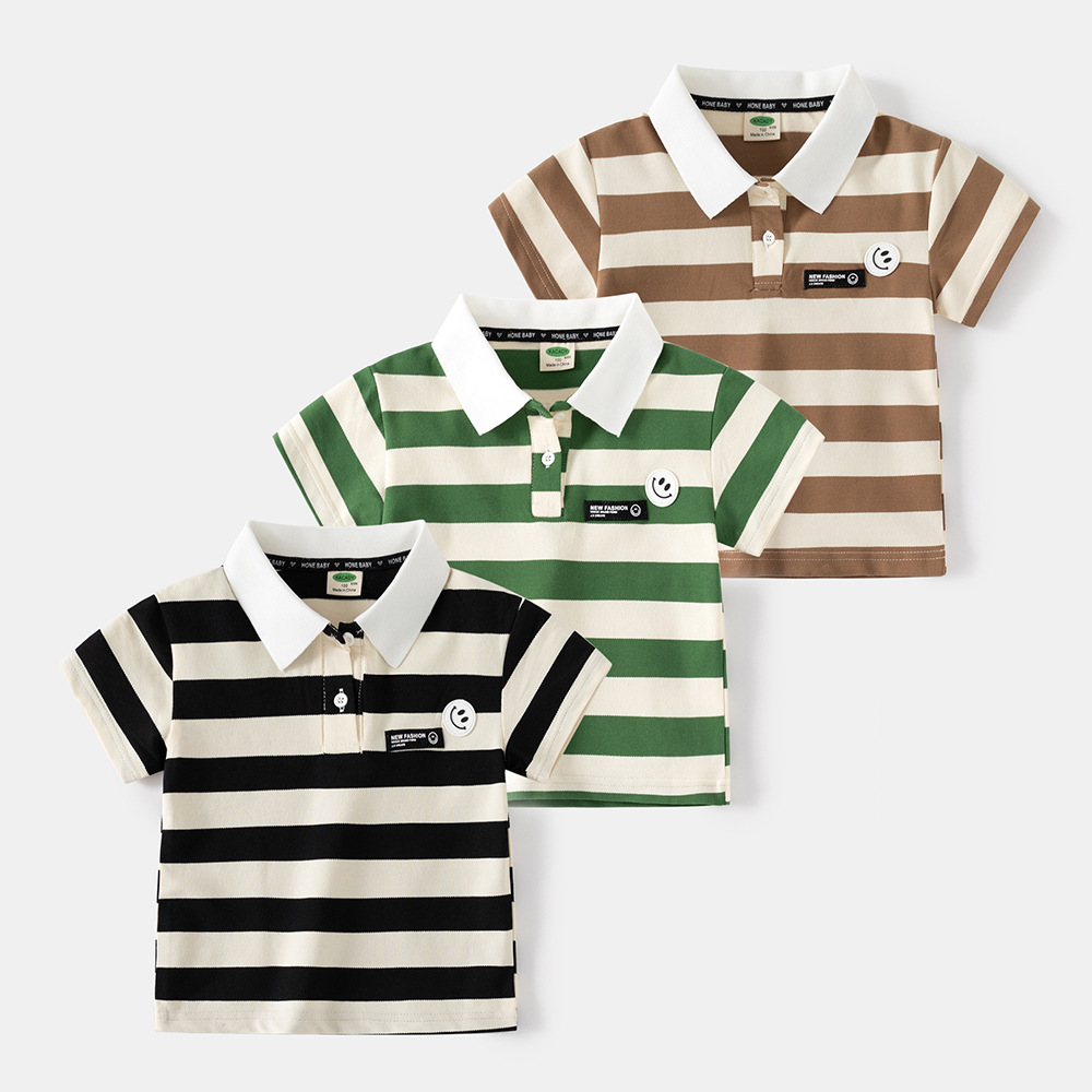 2023 new summer Korean children’s clothing boys children elastic striped short sleeve T-shirt top polo shirt wholesale