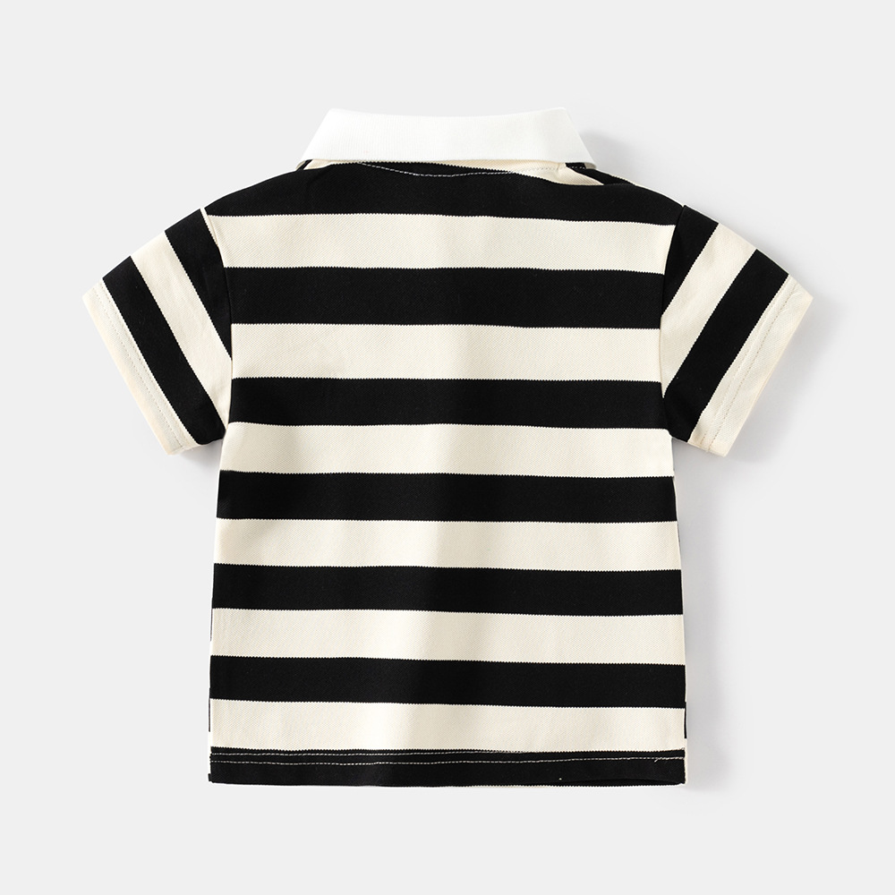 2023 new summer Korean children's clothing boys children elastic striped short sleeve T-shirt top polo shirt wholesale