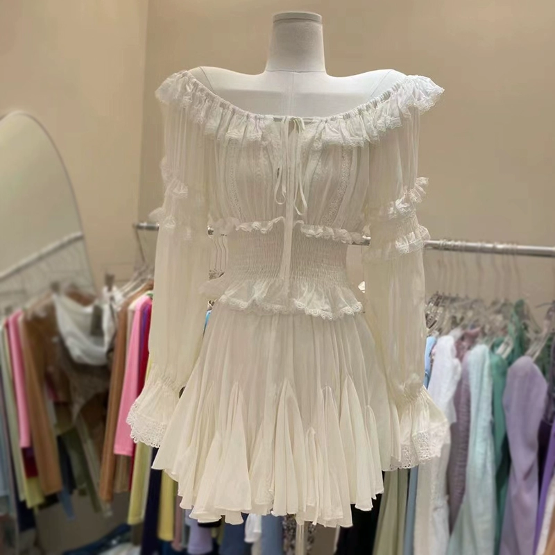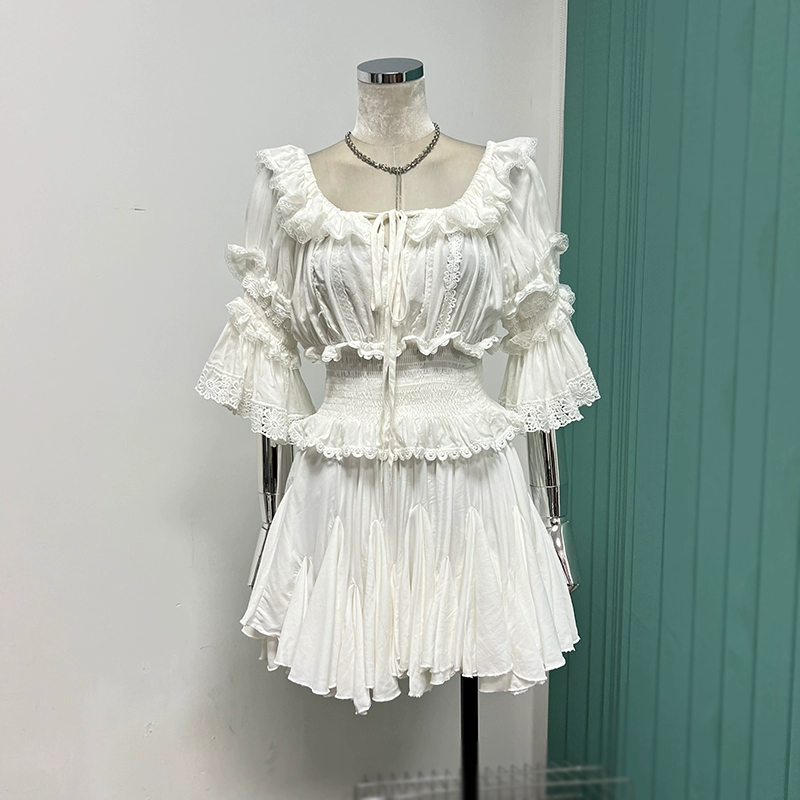 | nameOriginal | 2023 new summer Korean style fashionable pure Tencel cotton one-shoulder trumpet sleeve top + ruffled wide skirt |