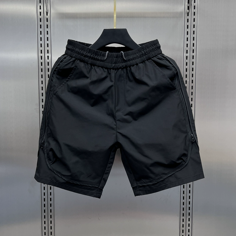 2023 new summer trendy brand zipper cargo shorts men's casual American loose straight mid-pants youth five-quarter pants
