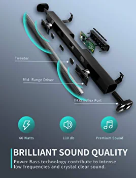 Our latest sound bar adopts Bluetooth 5.0 & DSP technology, ensuring the fastest transmission speeds and stable connectivity up to 50 ft with low consumption. You can play your favorite music anywhere with the newest Bluetooth 5.0 feature. The sound bar also has a Bluetooth button on the body for easy pairing.