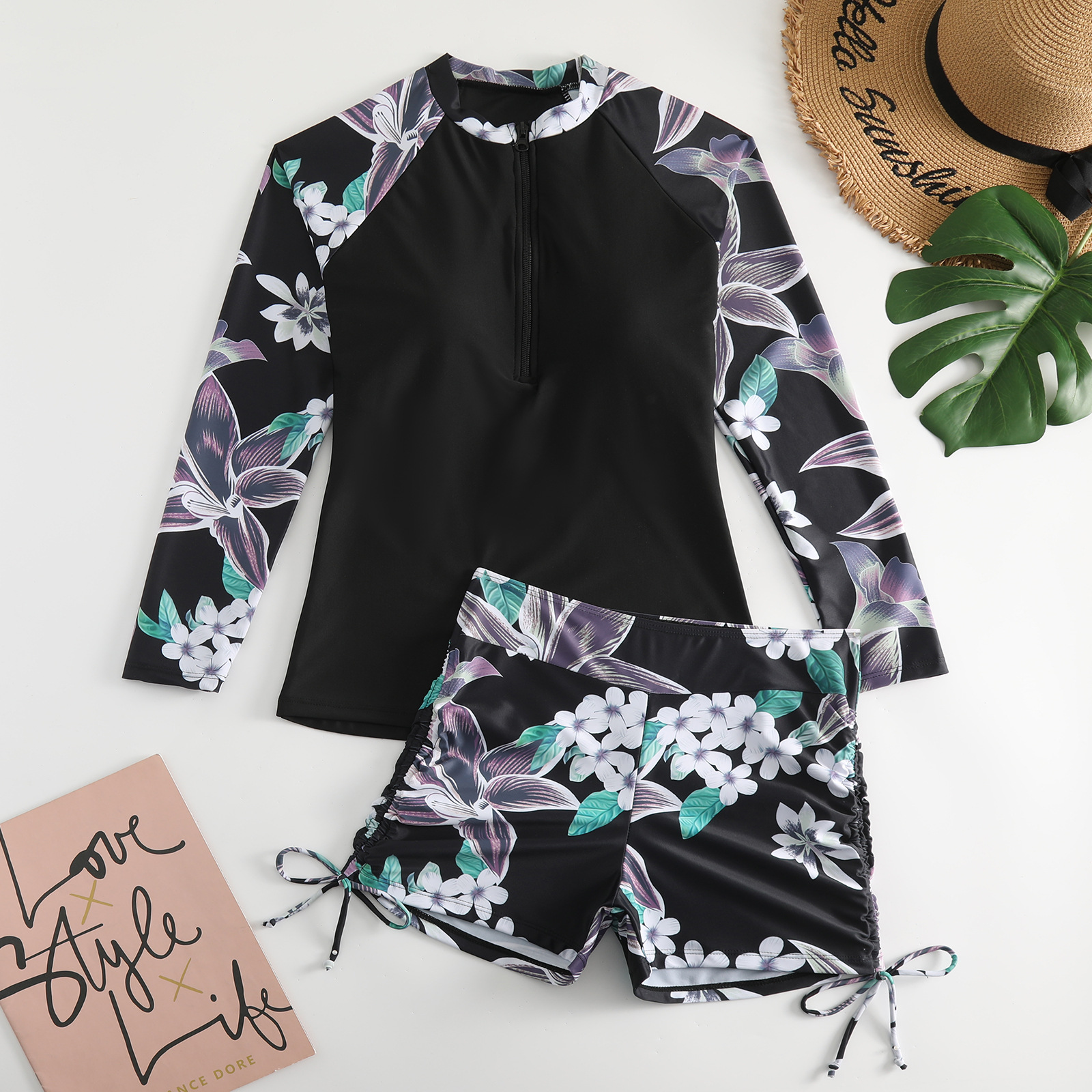 2023 new swimsuit sexy printed sunscreen surfing suit Amazon AliExpress split long sleeve swimsuit European and American swimming