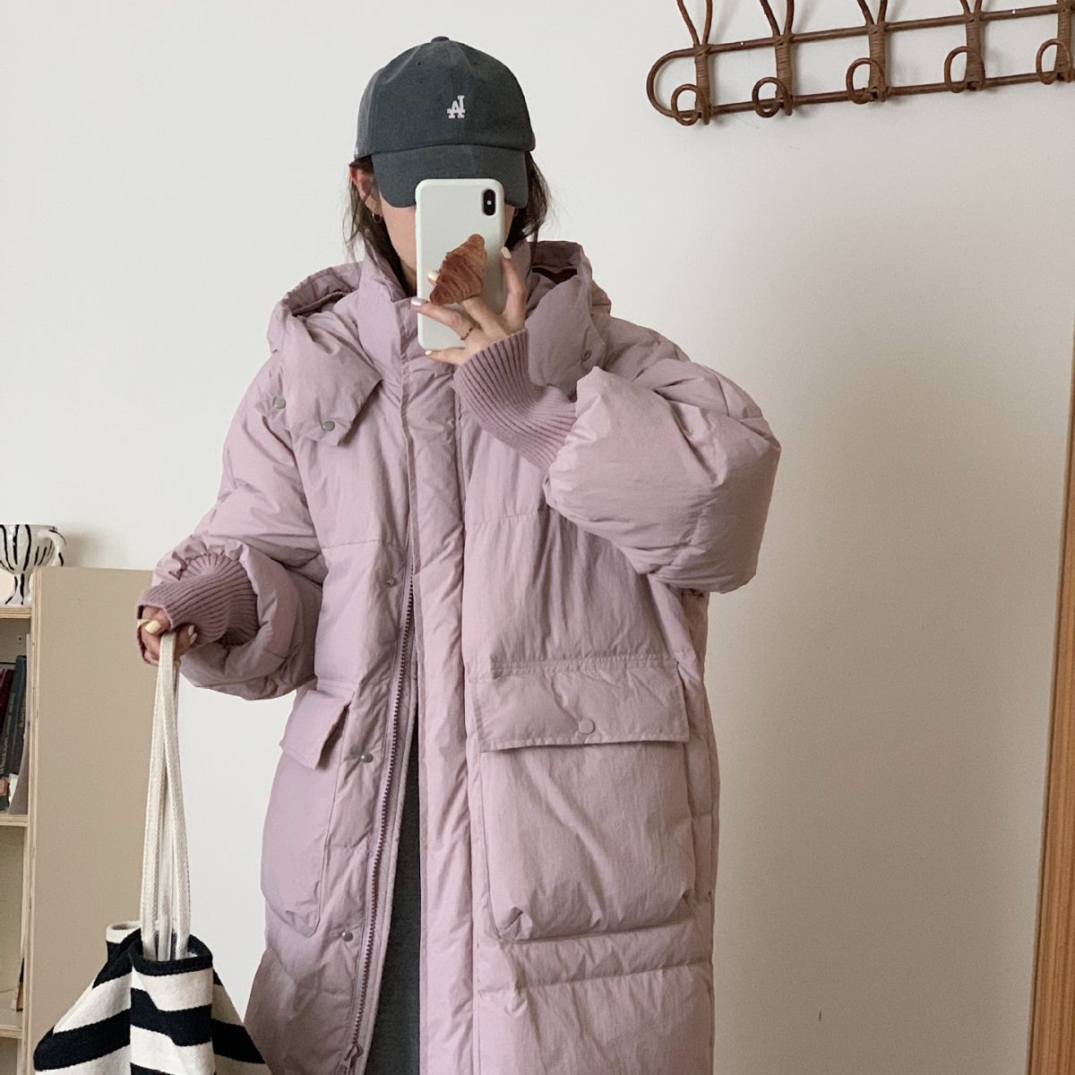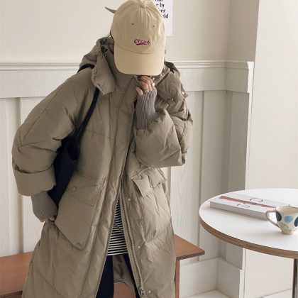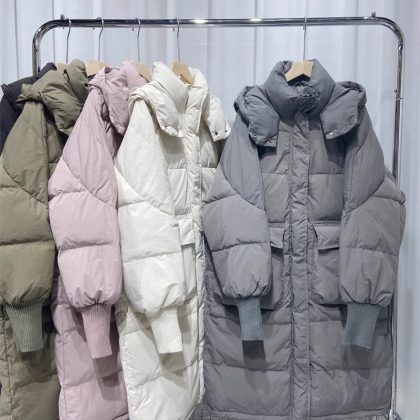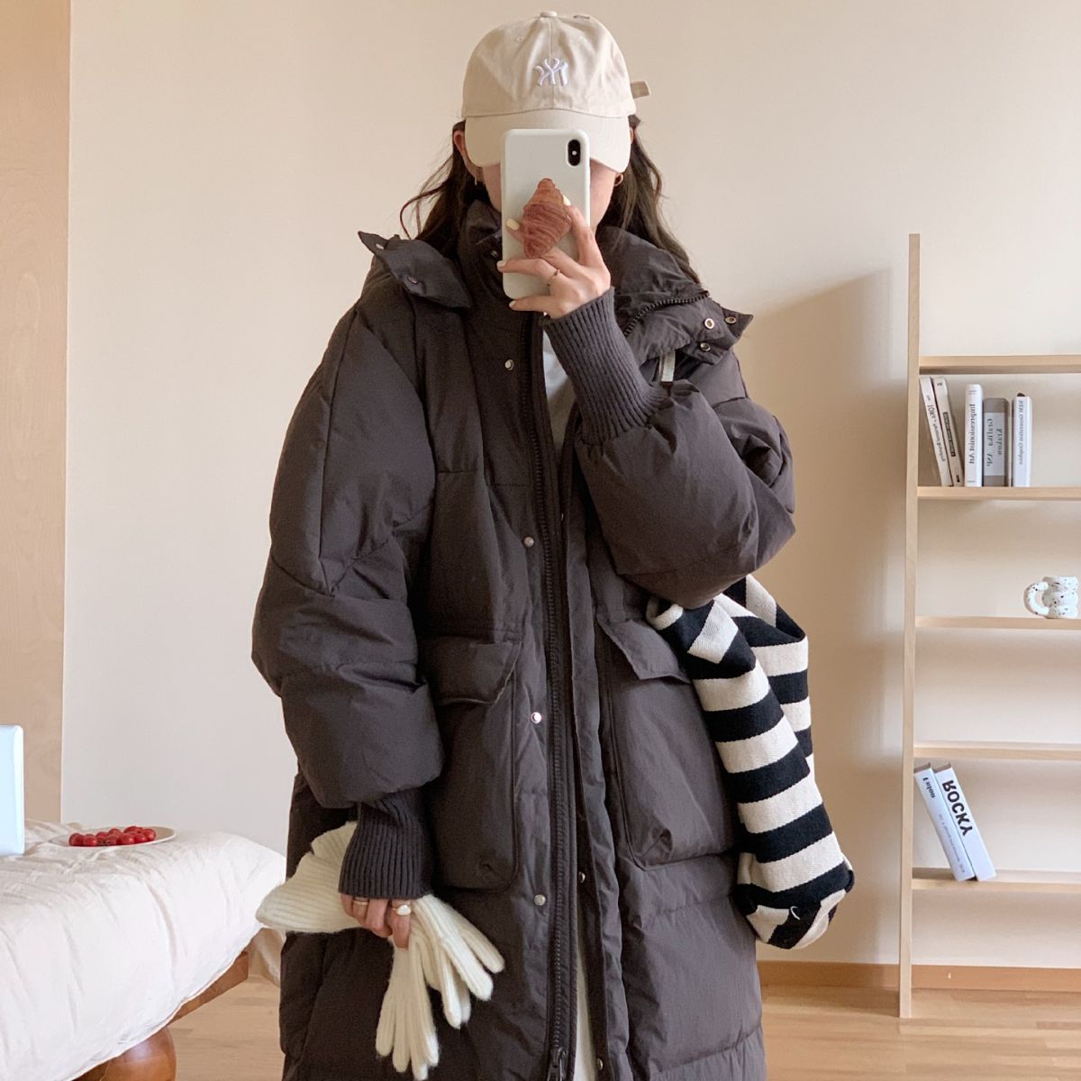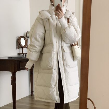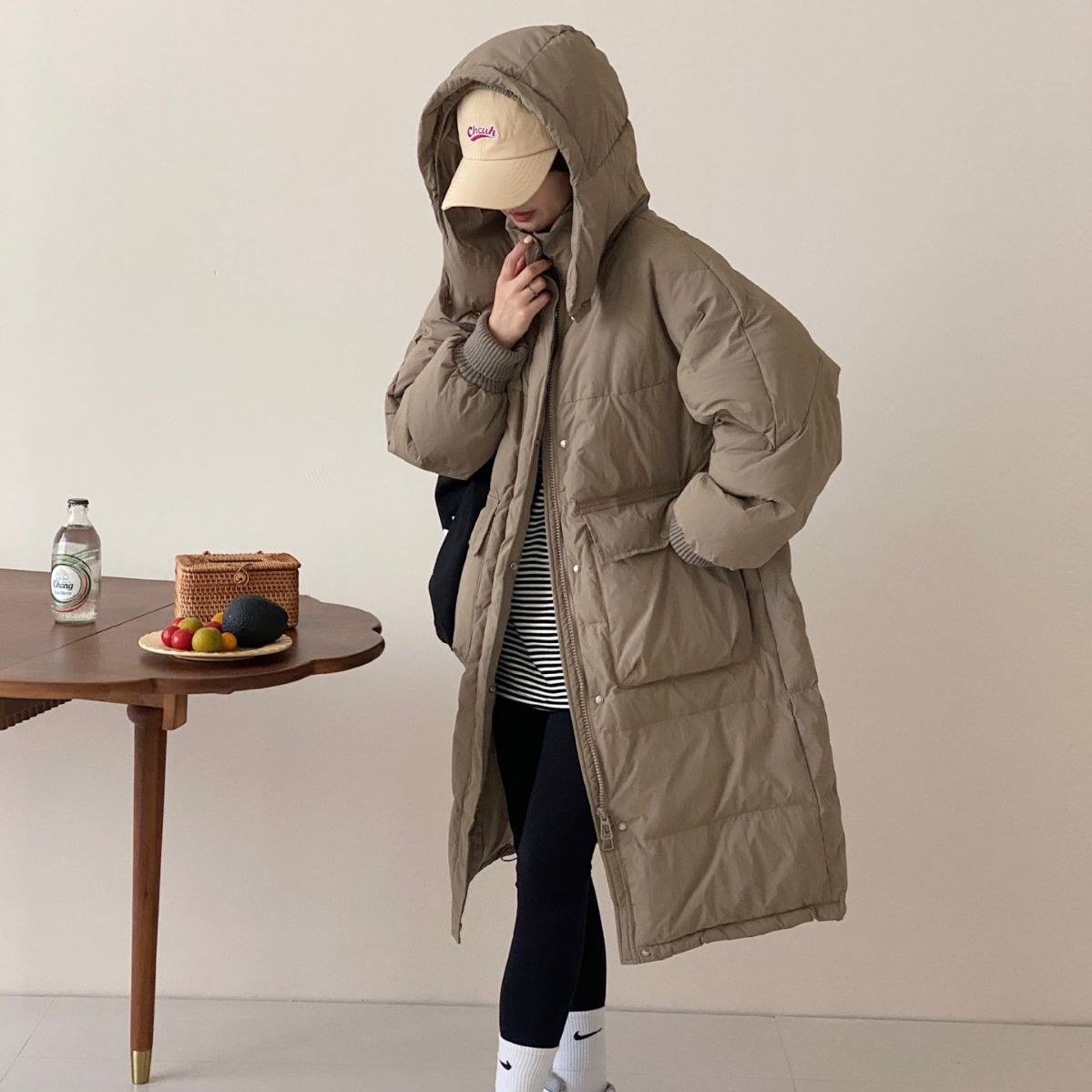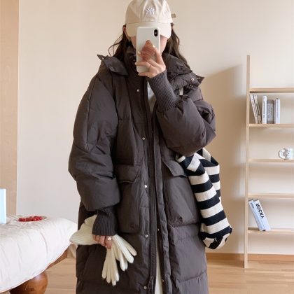 | nameOriginal | 2023 New Threaded Sleeve Down Jacket Women's Korean-style Loose Hooded Mid-length Knee-length Thickened White Duck Down Jacket |