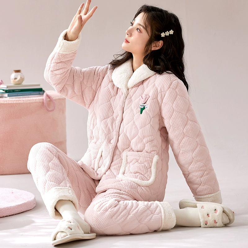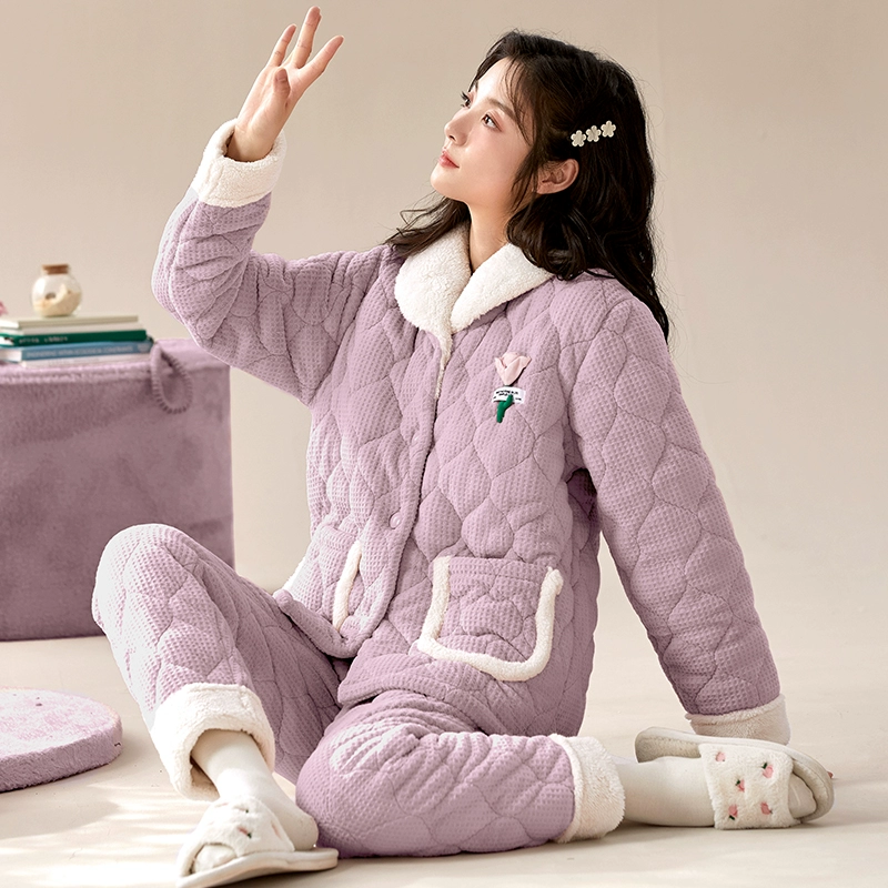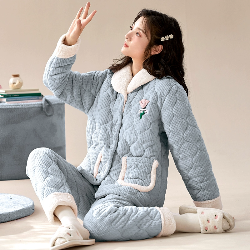 | nameOriginal | 2023 new three-layer quilted pajamas for women winter thickened plus velvet coral velvet winter flannel large size home clothes |