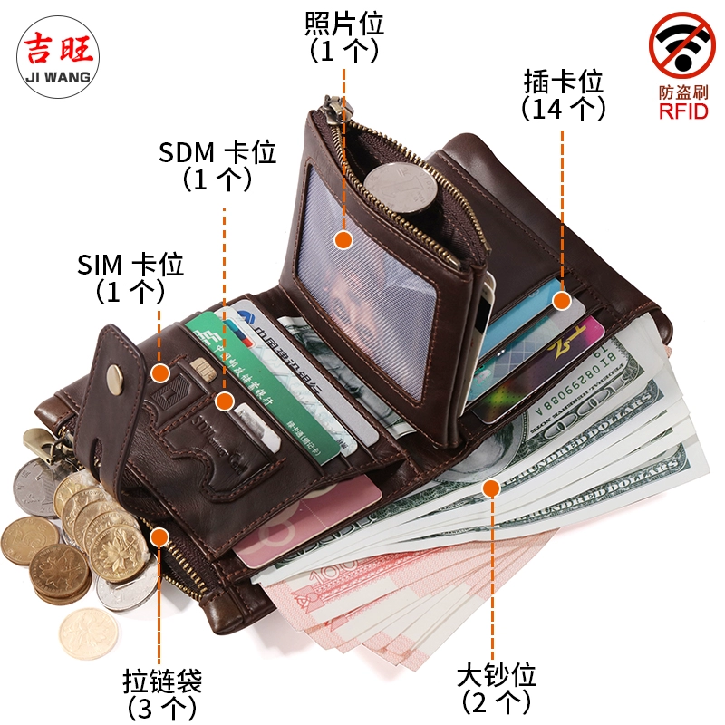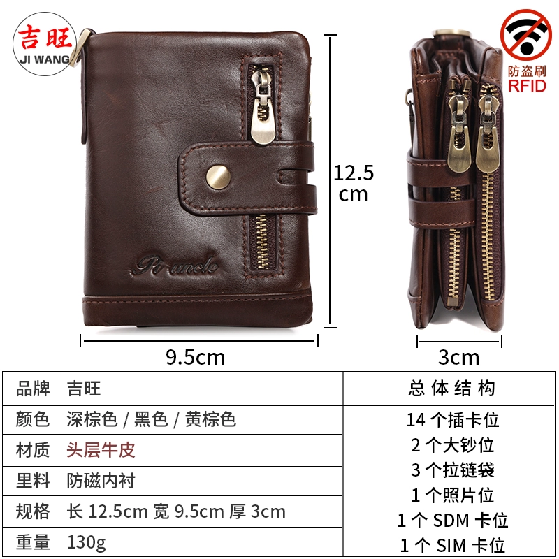 | nameOriginal | 2023 New Trendy Genuine Leather Short Wallet Men's First Layer Cowhide Zipper Buckle Wallet Casual Retro Driver's License Thin |