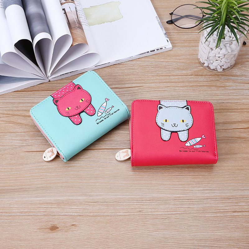2023 New Wallet Women’s Short Cute Zipper Cartoon Cute Cat Student Printed Women’s Coin Purse Women’s Bag Wholesale