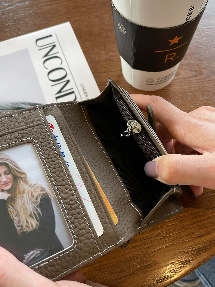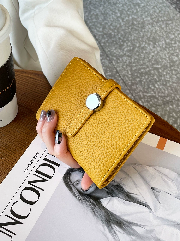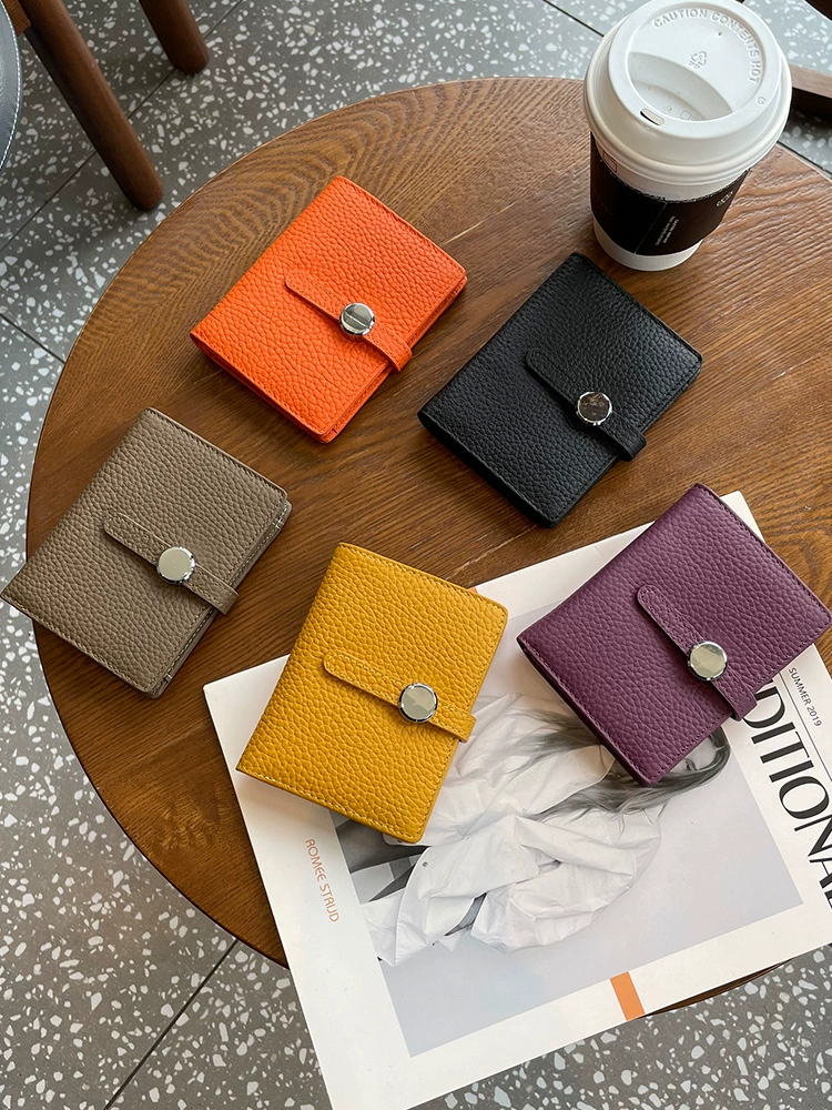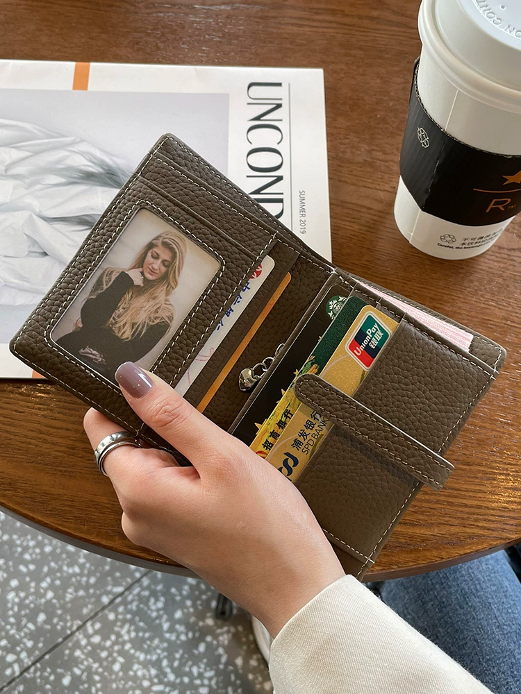 2023 New Wallet Women’s Short Genuine Leather 20% Off Strap Top Cowhide Wallet Multiple Card Slots Simple Wallet Vertical Style
