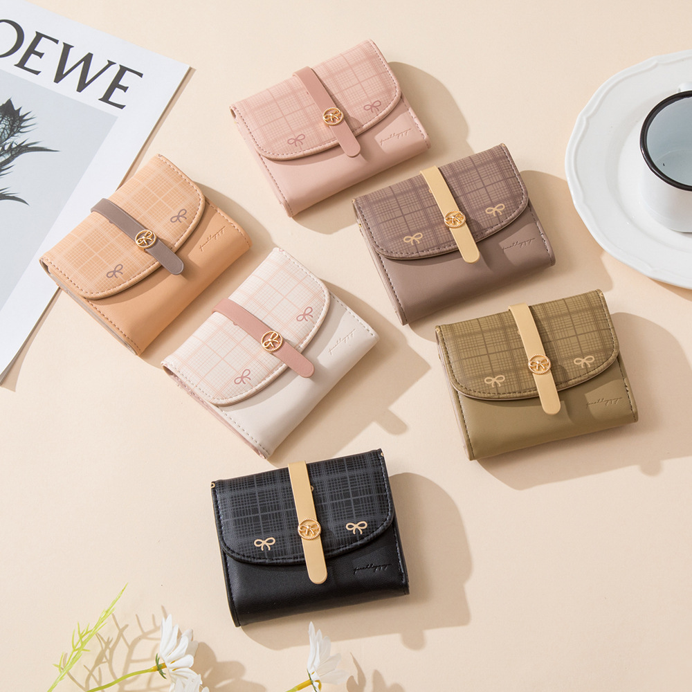 | nameOriginal | 2023 New Wallet Women's Short Korean-style PU Plaid Buckle and Three-fold Bag Simple Sweet Student Coin Purse |