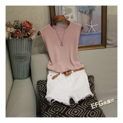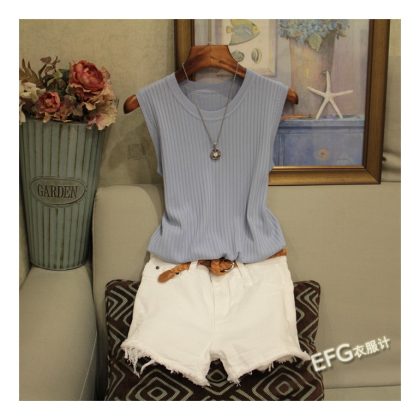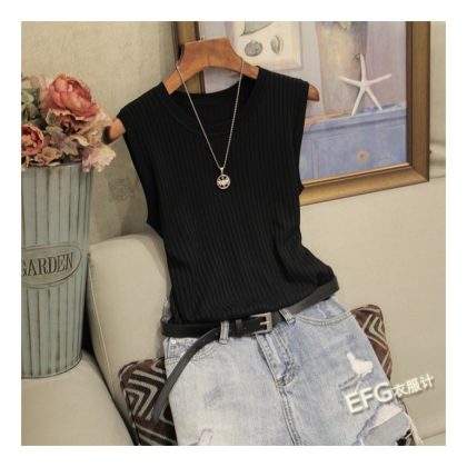| nameOriginal | 2023 new wide shoulder strap round neck versatile thin sleeveless ice silk knitted vest women's pit slimming top solid color |