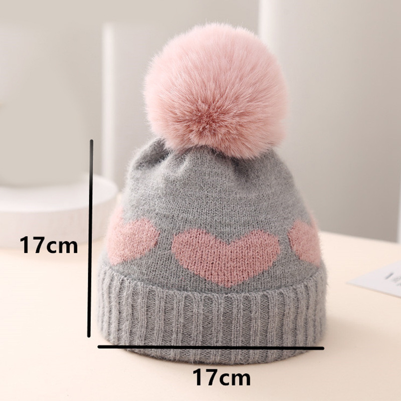 | nameOriginal | 2023 new winter baby hat double-layer thickened love hair ball knitted hat 0-12month newborn wool hat |