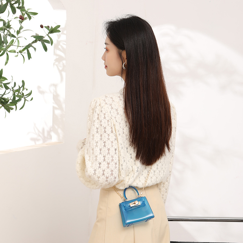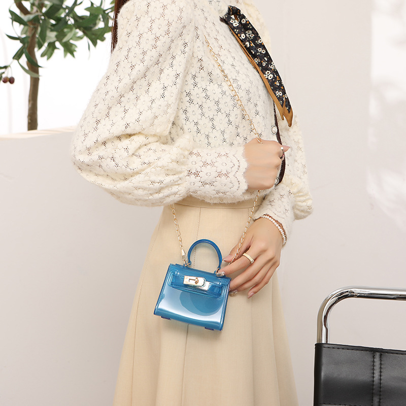 2023 new women handbags fashion all-match transparent chain Mini Kelly jelly bag mouth red envelope