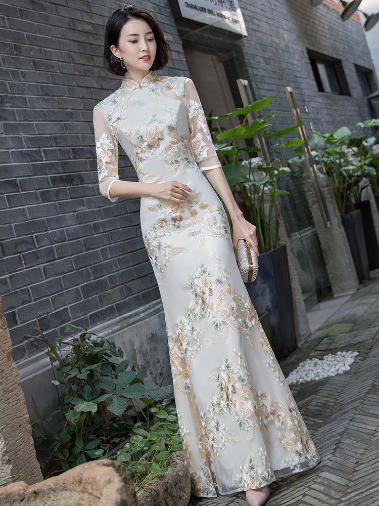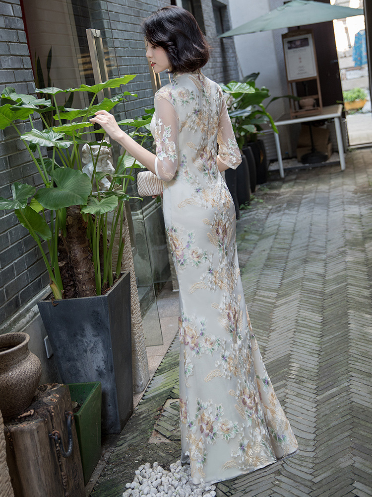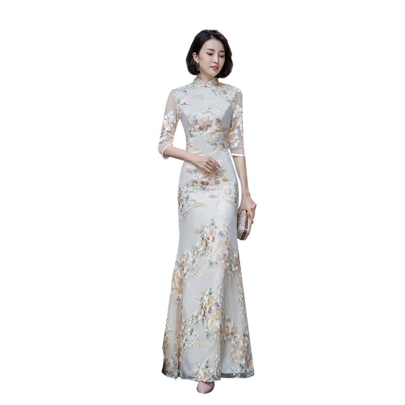 | nameOriginal | 2023 New Women's Improved Cheongsam New Girl's Slim-fit Long Chinese-style Fishtail Dress Elegant Show |