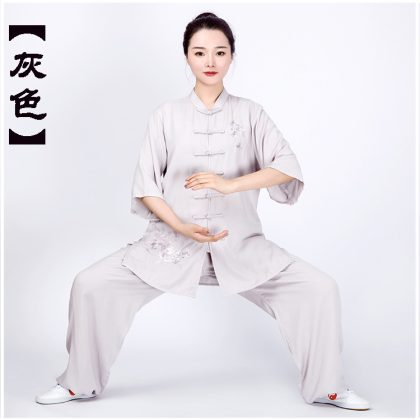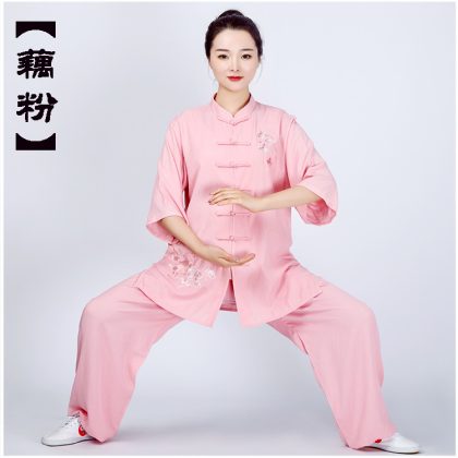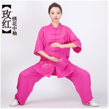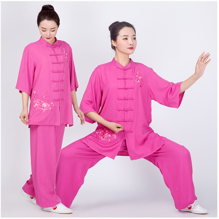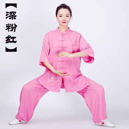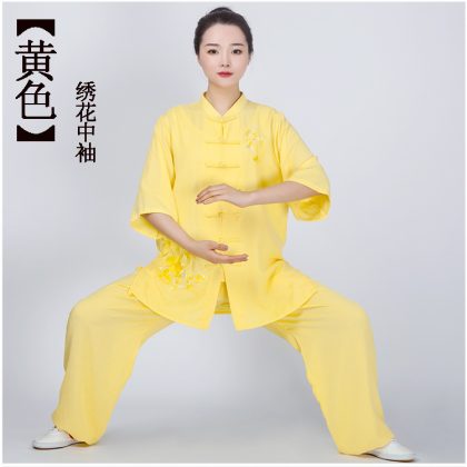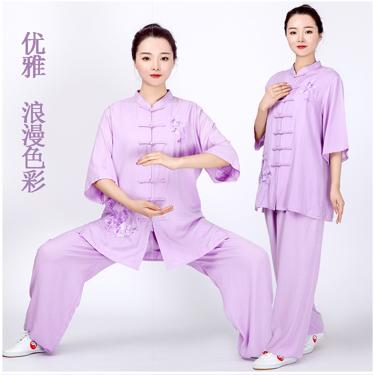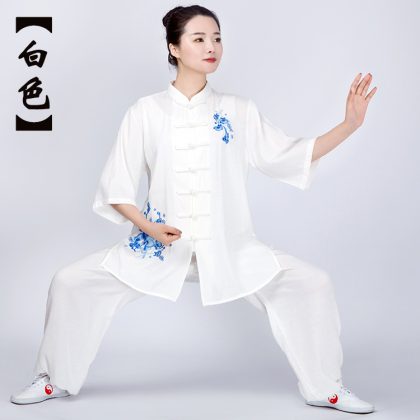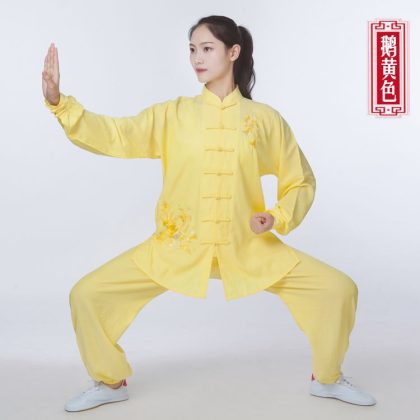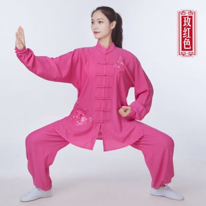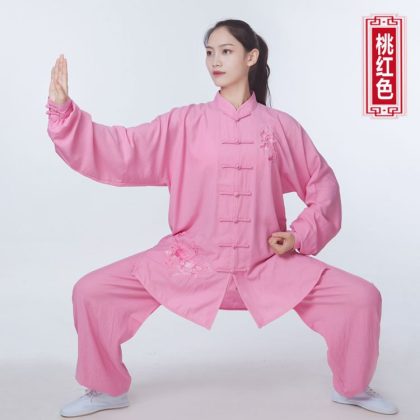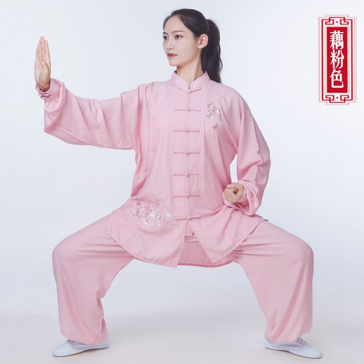 2023 new women’s long-sleeved linen cotton embroidered spring and autumn tai chi practice clothing summer competition clothing