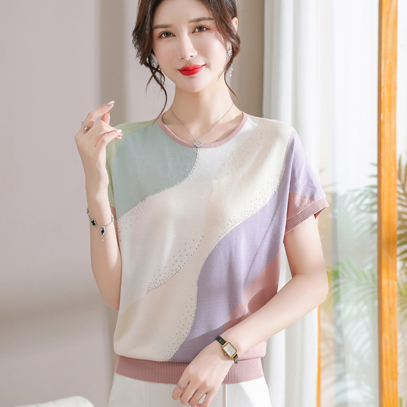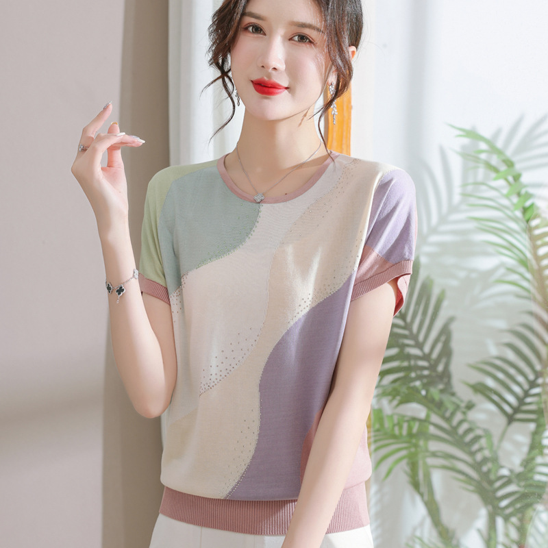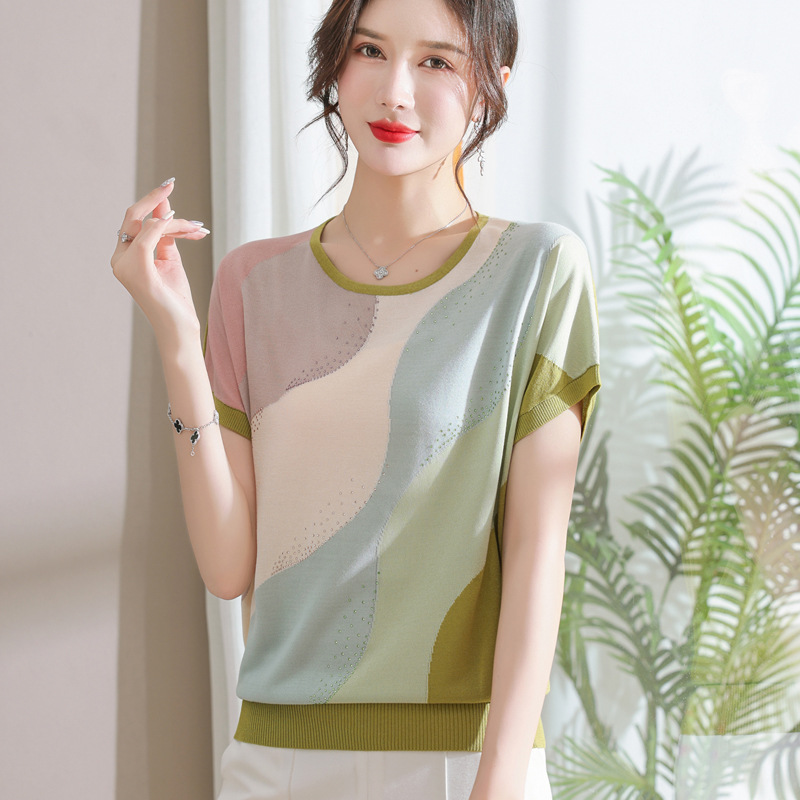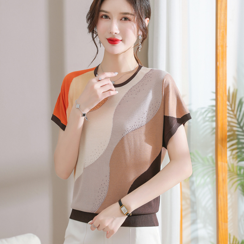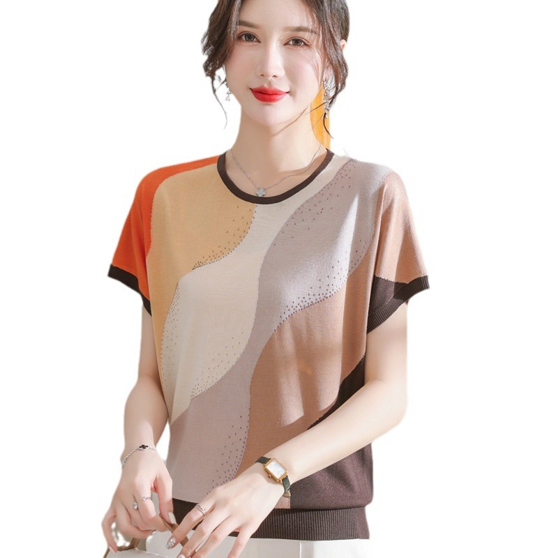 | nameOriginal | 2023 New Women's Summer Ice Silk Knitted T-shirt Women's Loose plus size Short Sleeve Top suit |
