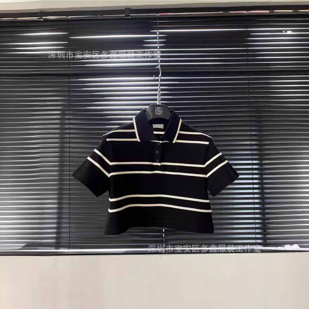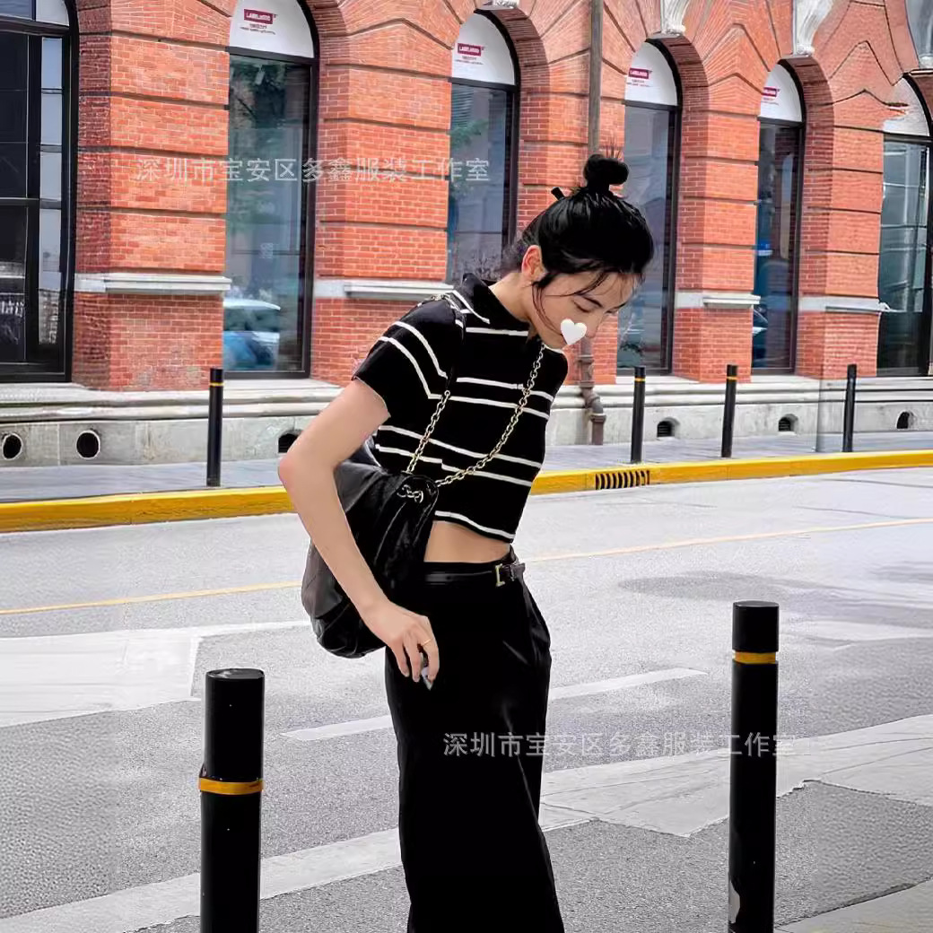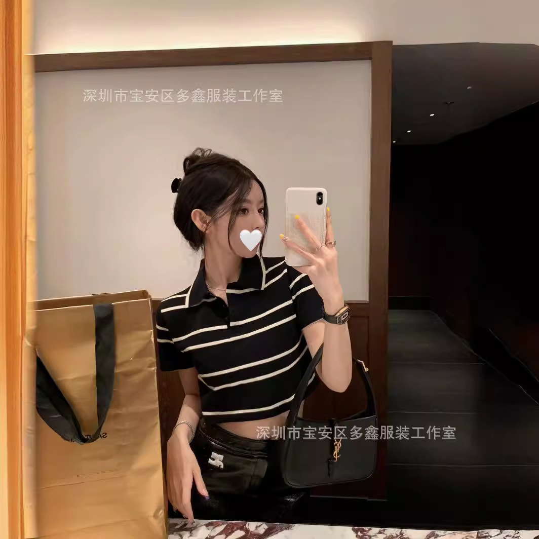 | nameOriginal | 2023 new ys black and white striped short polo shirt high waist short sleeve T-shirt South oil supply |