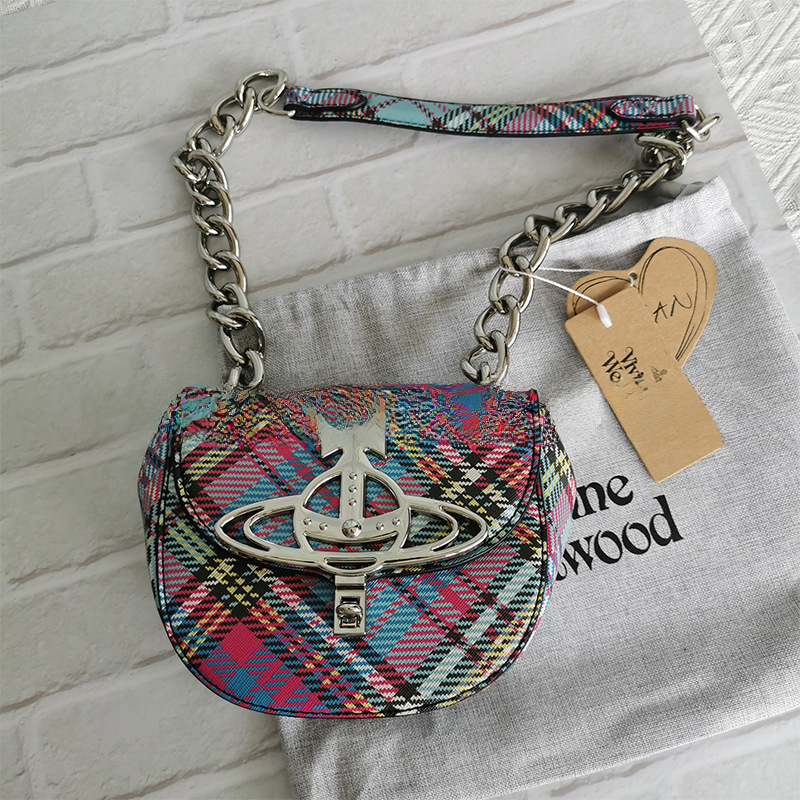 | nameOriginal | 2023 niche Queen Mother saddle bag Saturn Plaid underarm bag retro thick chain punk style hot girl shoulder bag |