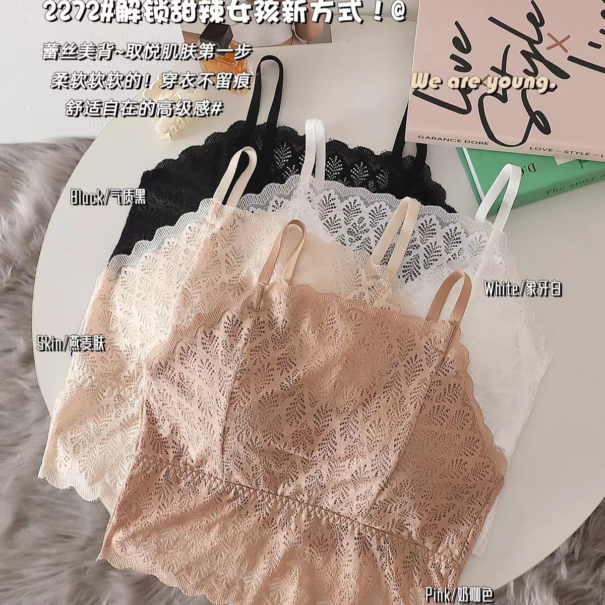 2023 One-character Collar Anti-slip Lace Large Size Vest Breathable Latex Pad Sling Beautiful Back Outer Wear Chest Wrap Underwear
