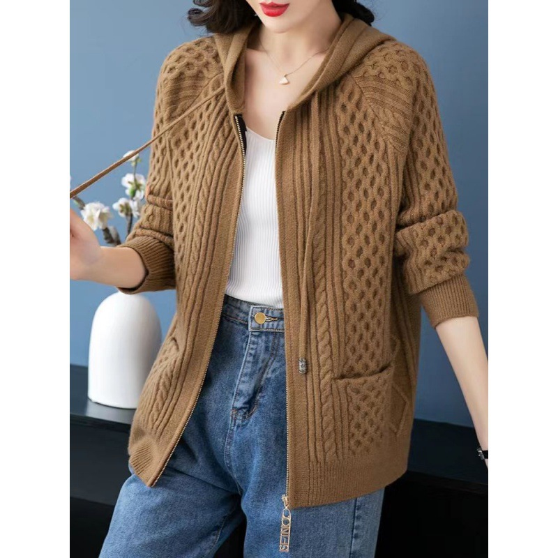 | nameOriginal | 2023 popular zipper hooded sweater knitted cardigan women's short sweater coat loose plus size trendy autumn women's clothing |
