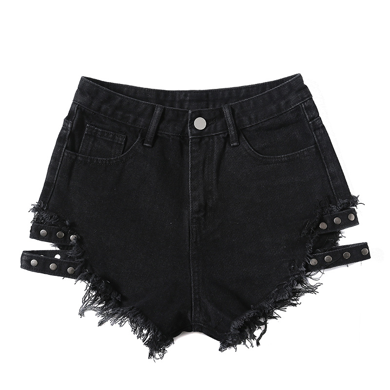 | nameOriginal | 2023 Side with Studded Denim Shorts Loose Ripped High Waist Jeans Wide Legs Slim Look Frayed Hot Pants for Women |