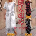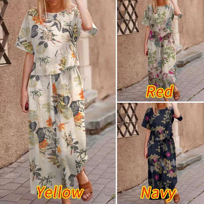 2023 spot cross-border new AliExpress Amazon cotton and linen plant printed short sleeve casual pants set
