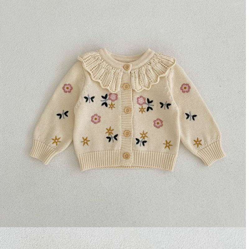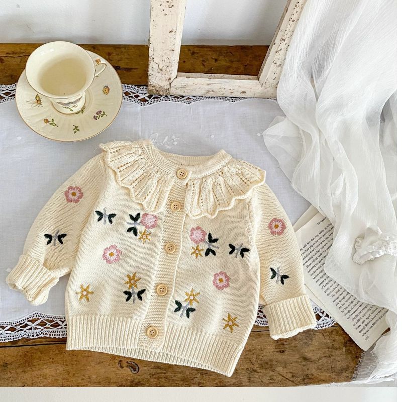 | nameOriginal | 2023 spring all-match baby girls' flower embroidered lotus collar knitted long-sleeved cardigan coat children's clothing |