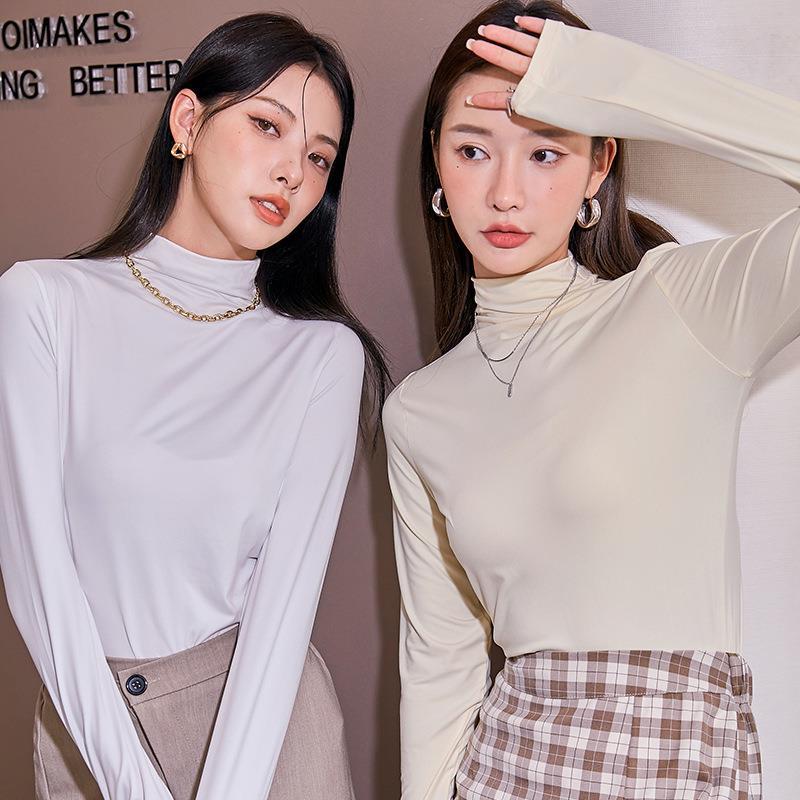 2023 Spring and Autumn Amino Acid Mask Clothes Women’s Autumn and Winter Half-High Collar Long-Sleeved All-Match Slimming Base Shirt Black Top