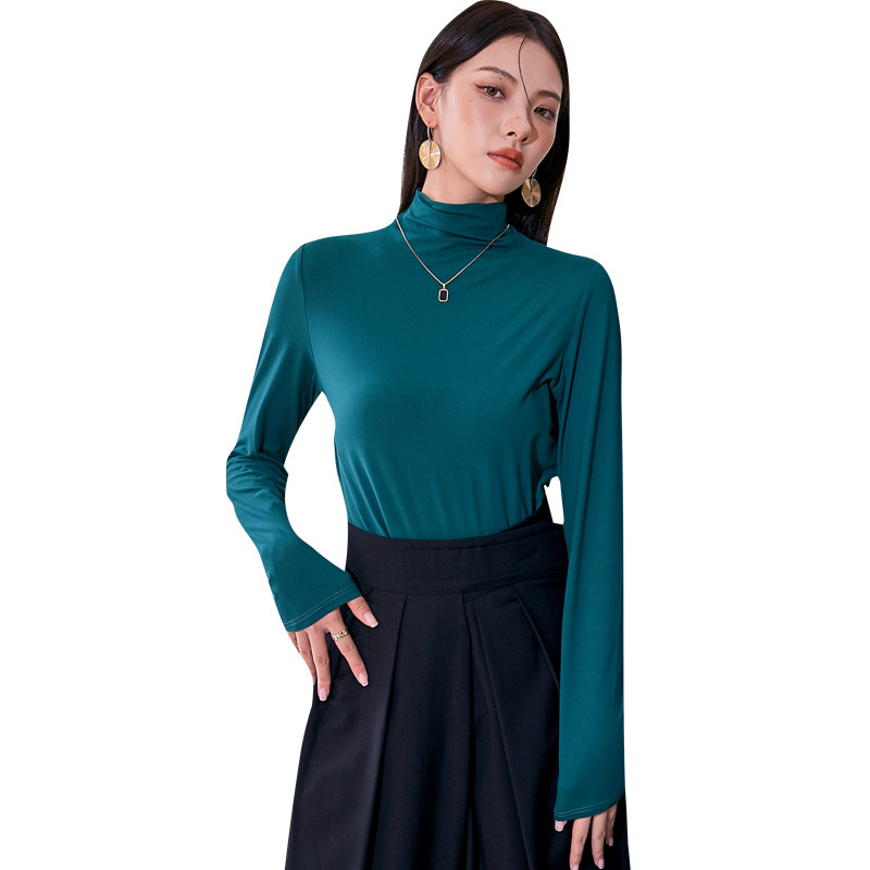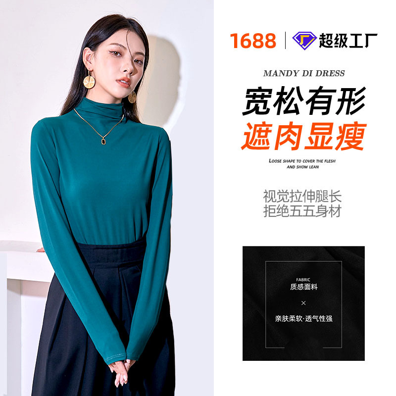 2023 Spring and Autumn Amino Acid Mask Clothes Women's Autumn and Winter Half-High Collar Long-Sleeved All-Match Slimming Base Shirt Black Top