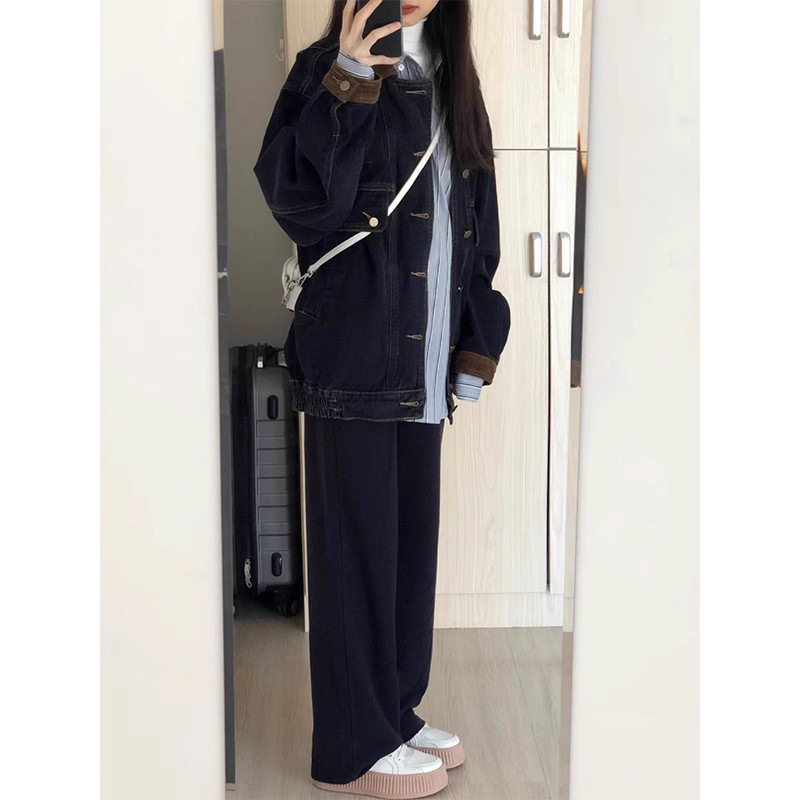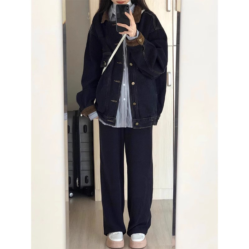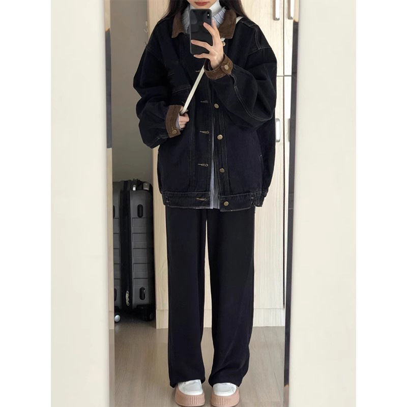 2023 spring and autumn Hong Kong style washed black American Retro denim jacket women’s new design loose jacket top