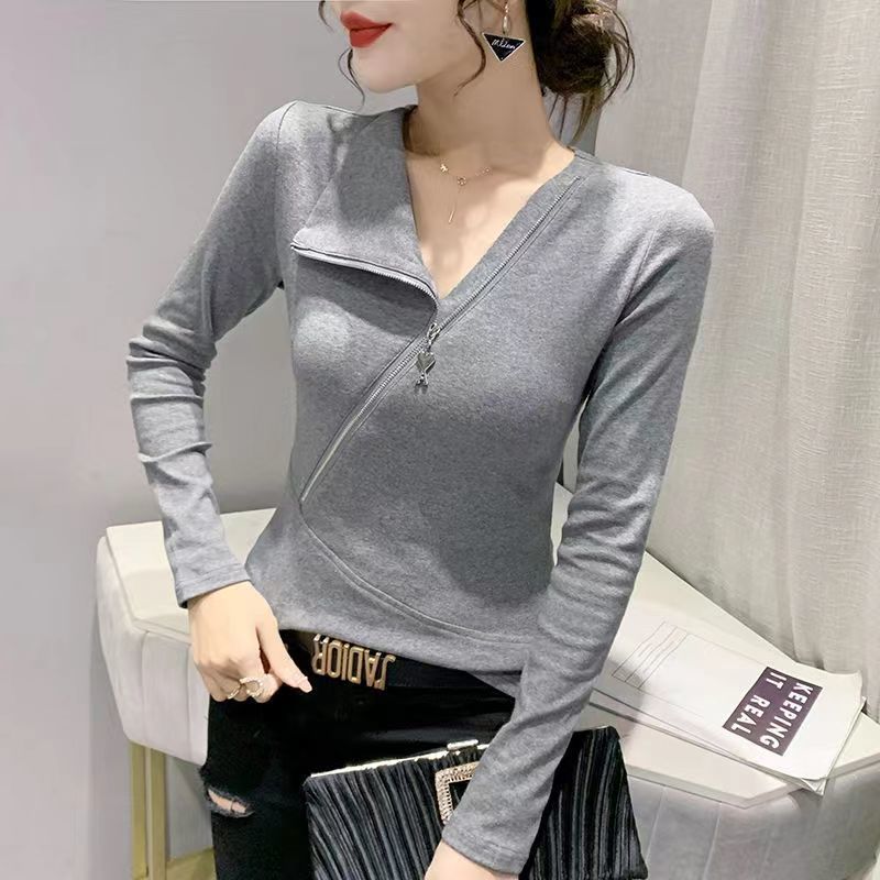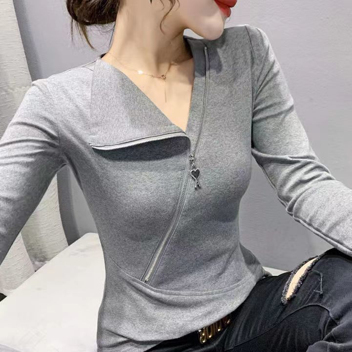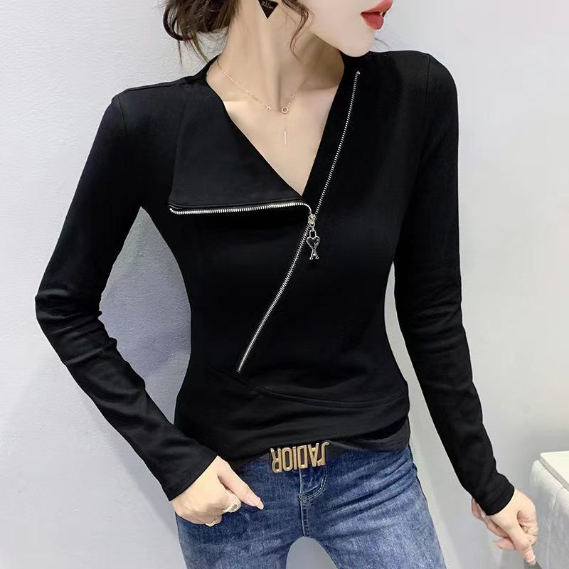 | nameOriginal | 2023 Spring and Autumn New Arrival Threaded Long-Sleeved Women's Collar Slim-Looking Zipper Top Slim-Fit All-Match Base-Layer Shirt |