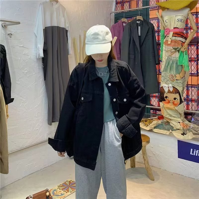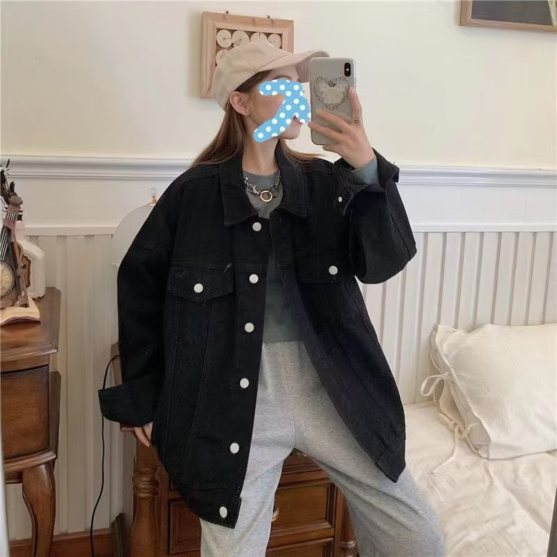 2023 Spring and Autumn New Black Denim Jacket Women’s Loose Korean-style bf Casual Denim Student Jacket Trendy