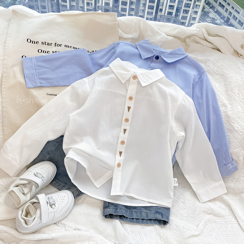 2023 Spring and Autumn new boys’ handsome long-sleeved shirt children’s baby Korean style fashionable western style shirt 0198A051