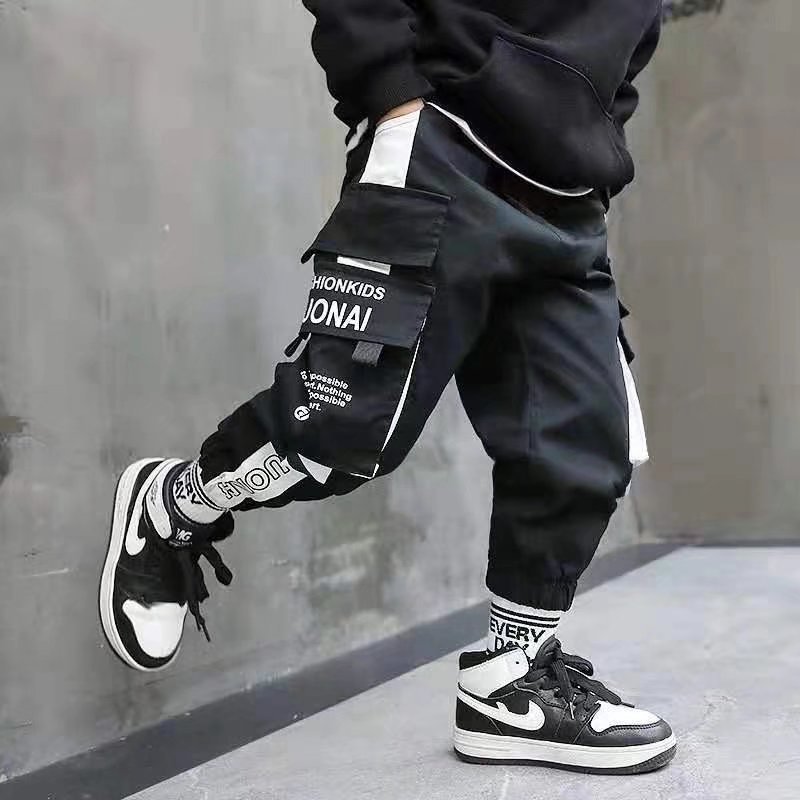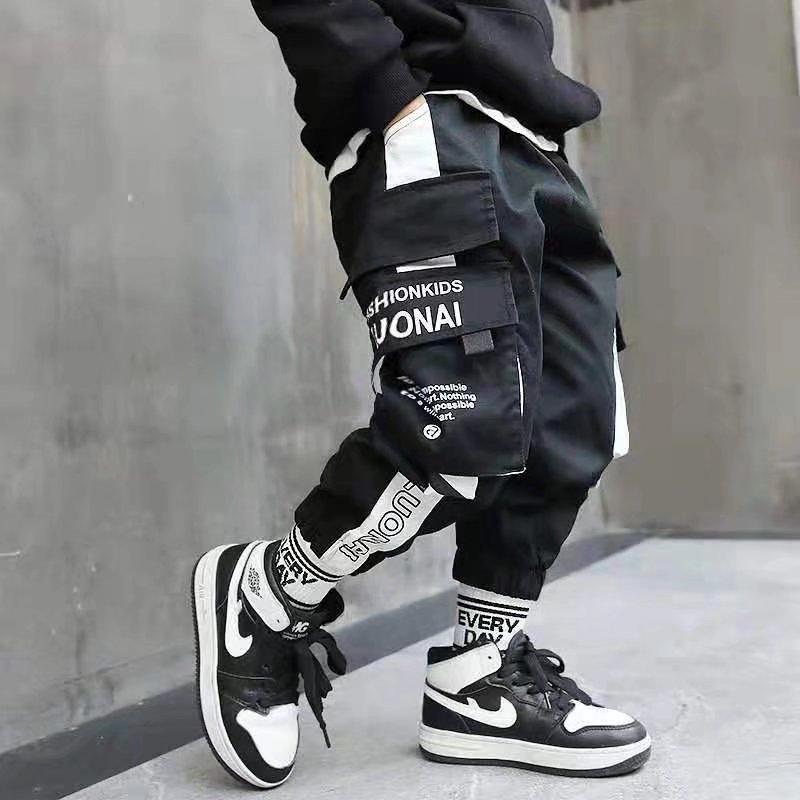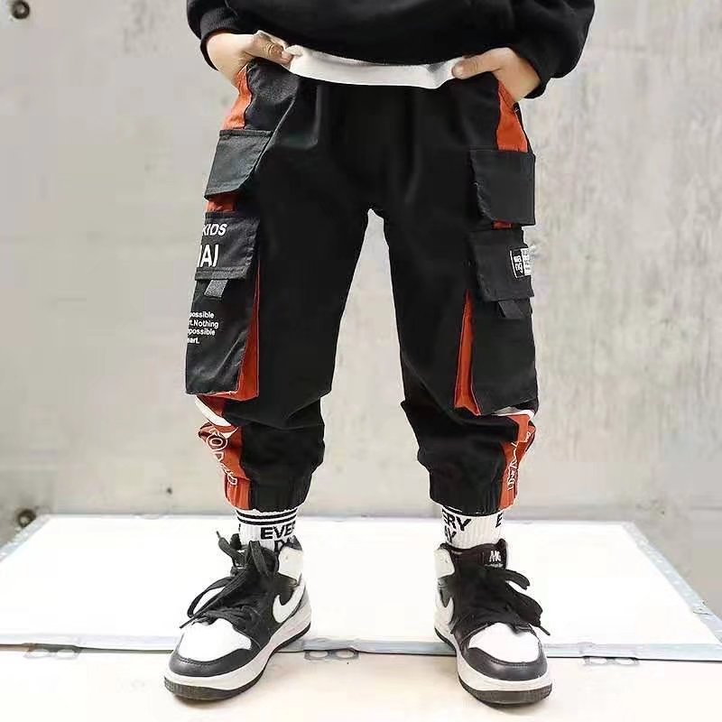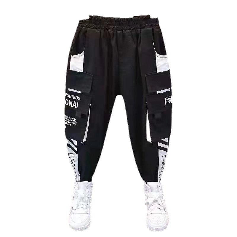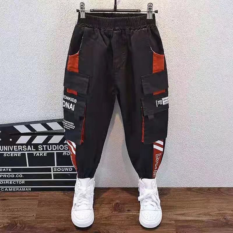 2023 Spring and Autumn new boys’ pants loose casual overalls medium and big children all-match trendy sports pants