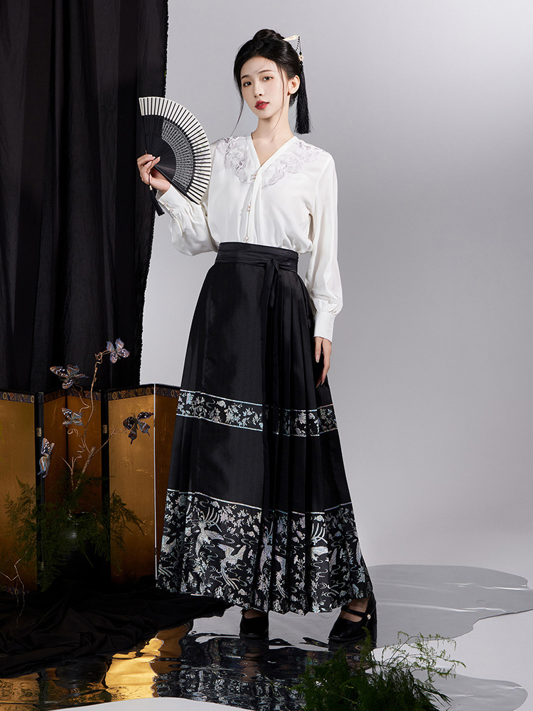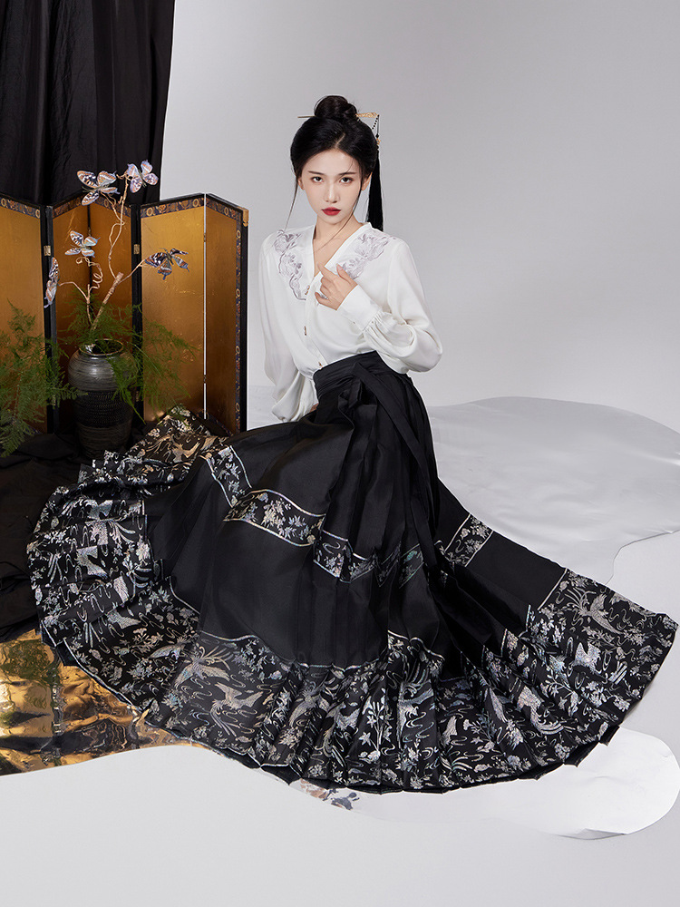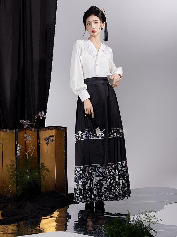 | nameOriginal | 2023 Spring and Autumn New Chinese Style Chinese Style Hanfu Shirt Commuter Embroidered Top Woven Gold Horse Face Skirt suit Two-piece Set |