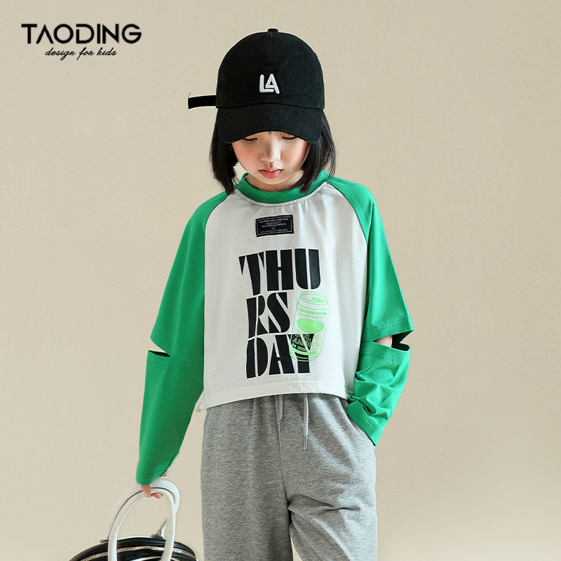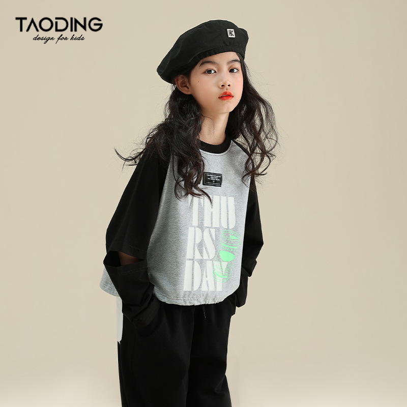 | nameOriginal | 2023 Spring and Autumn New Girls' Sweater for Middle and Big Children's Casual Fashion Printed Top Stitching Fried Street Long Sleeve |