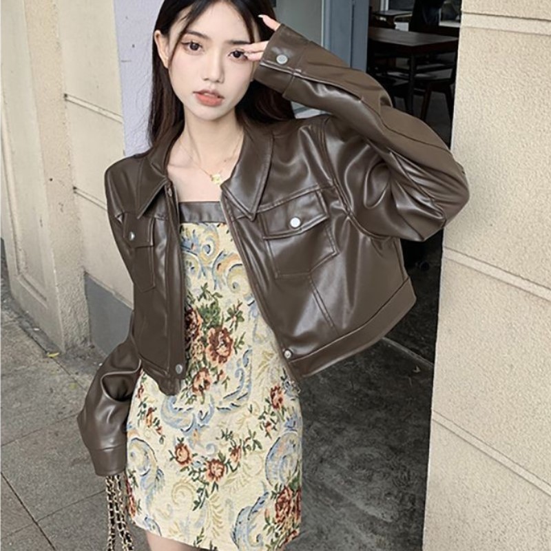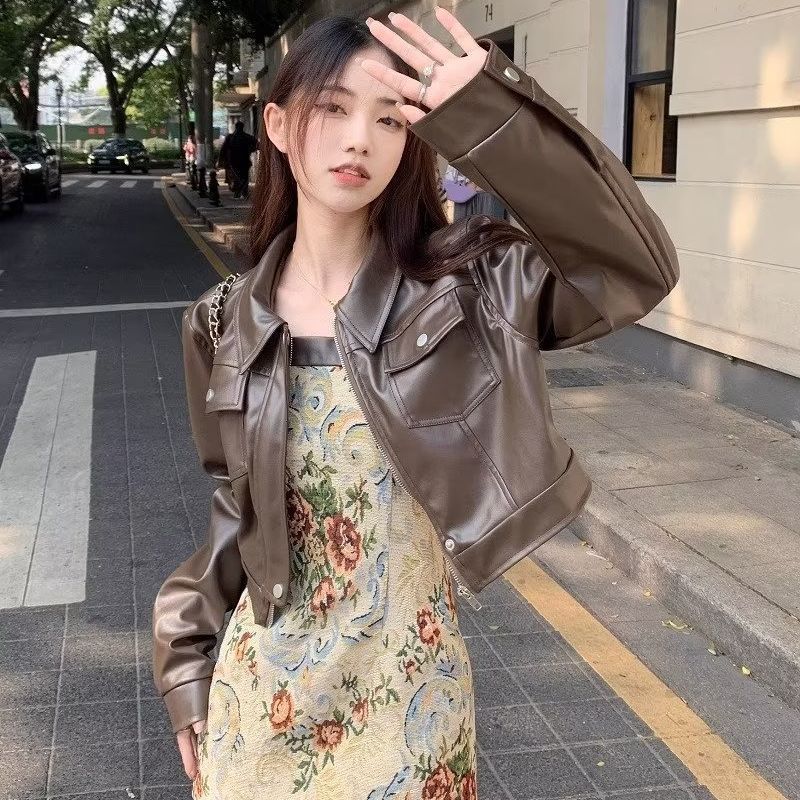 | nameOriginal | 2023 Spring and Autumn New Korean style loose brown retro Hong Kong style fried street leather jacket women's workwear motorcycle pu jacket |