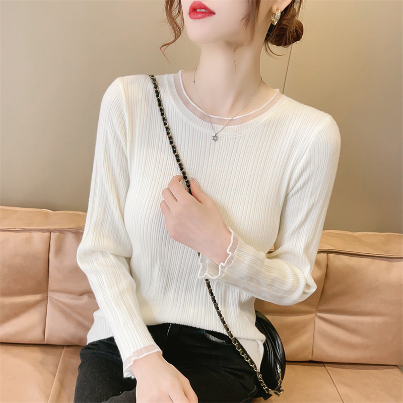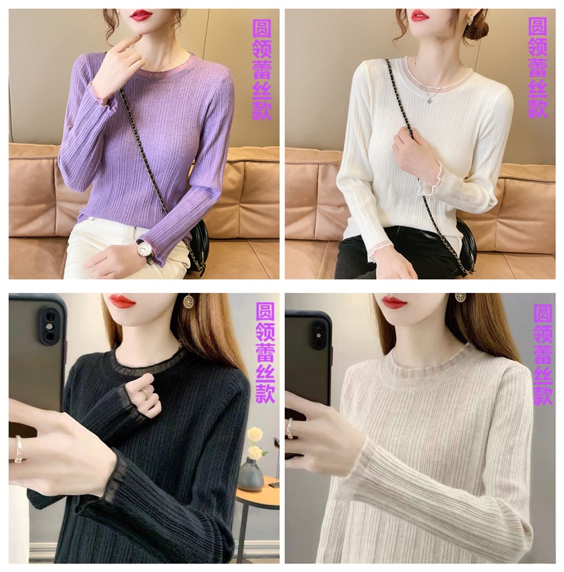 2023 Spring and Autumn New sweet bottoming shirt women’s half turtleneck sweater slim lace inner sweater top