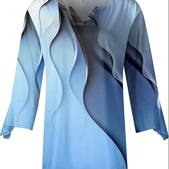| nameOriginal | 2023 spring and autumn V-neck printed casual loose 7-point sleeve European and American women's top |
