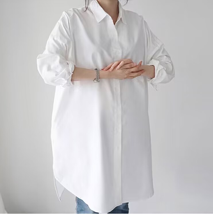 | nameOriginal | 2023 Spring and Autumn white shirt women's long sleeve new mid-length western style lazy loose design pocket shirt |