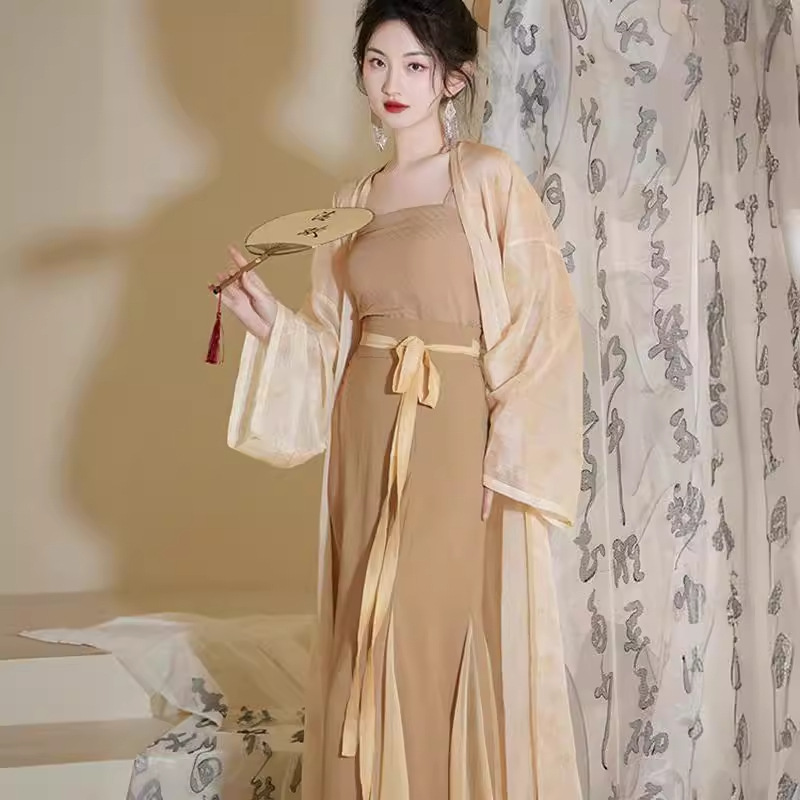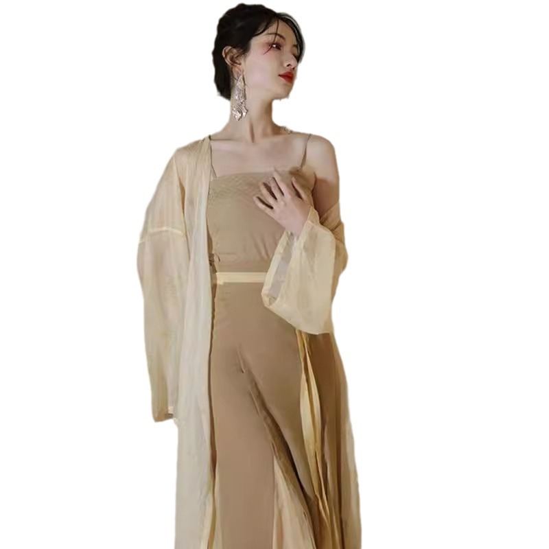 | nameOriginal | 2023 spring and summer new Chinese retro improved Hanfu long shirt + suspenders + fishtail multi-tube skirt Han element suit |