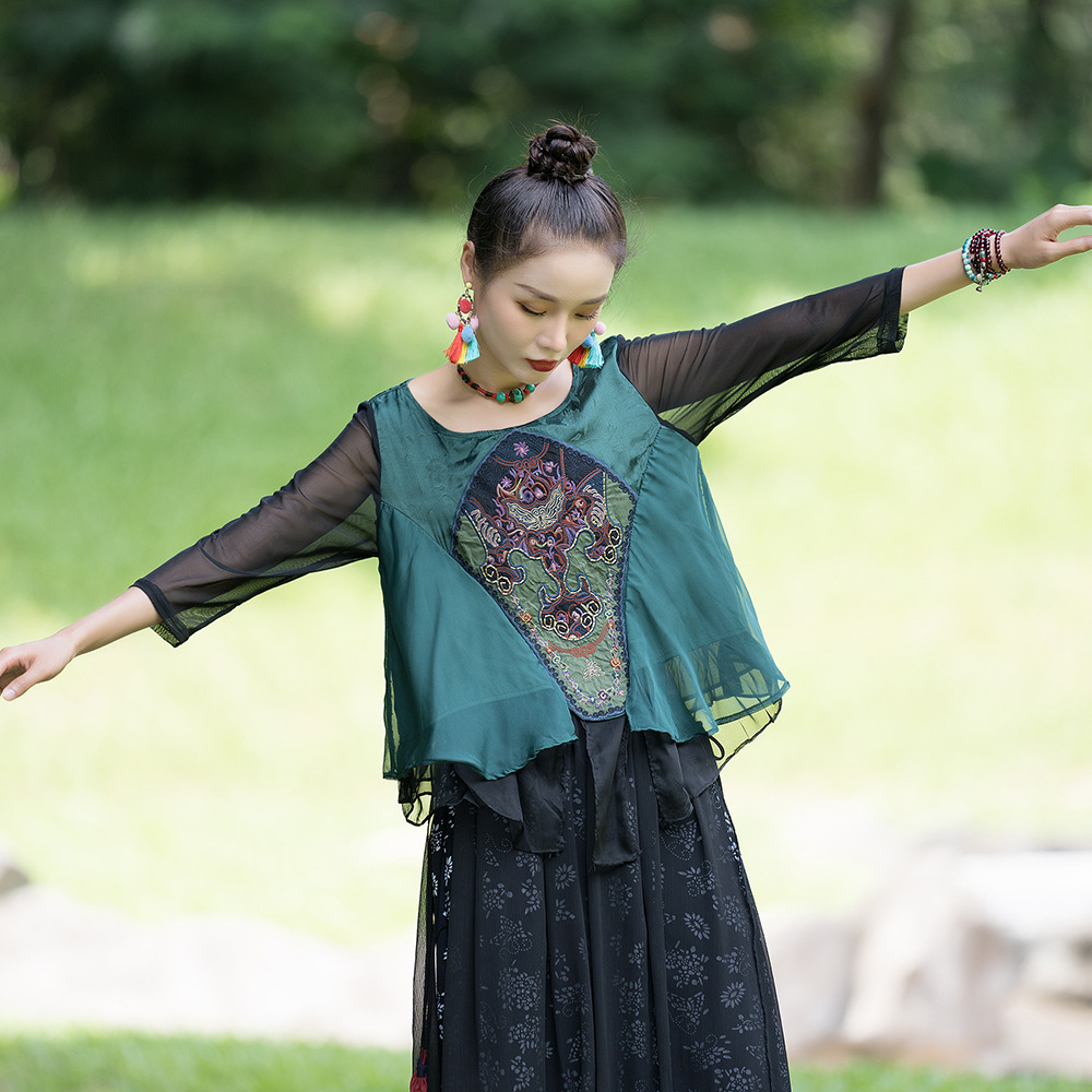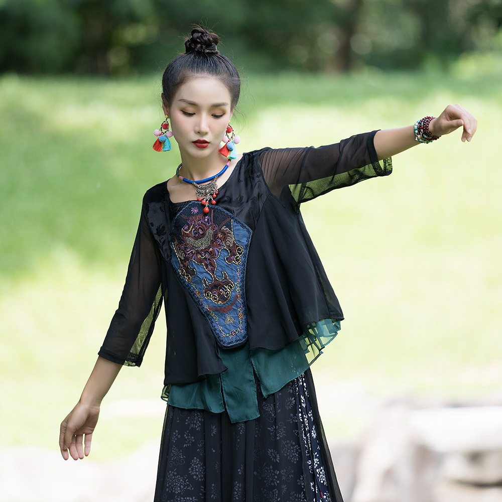 | nameOriginal | 2023 spring and summer new ethnic style women's clothing Chinese retro heavy embroidery stitching three-quarter sleeve improved Tang suit top |