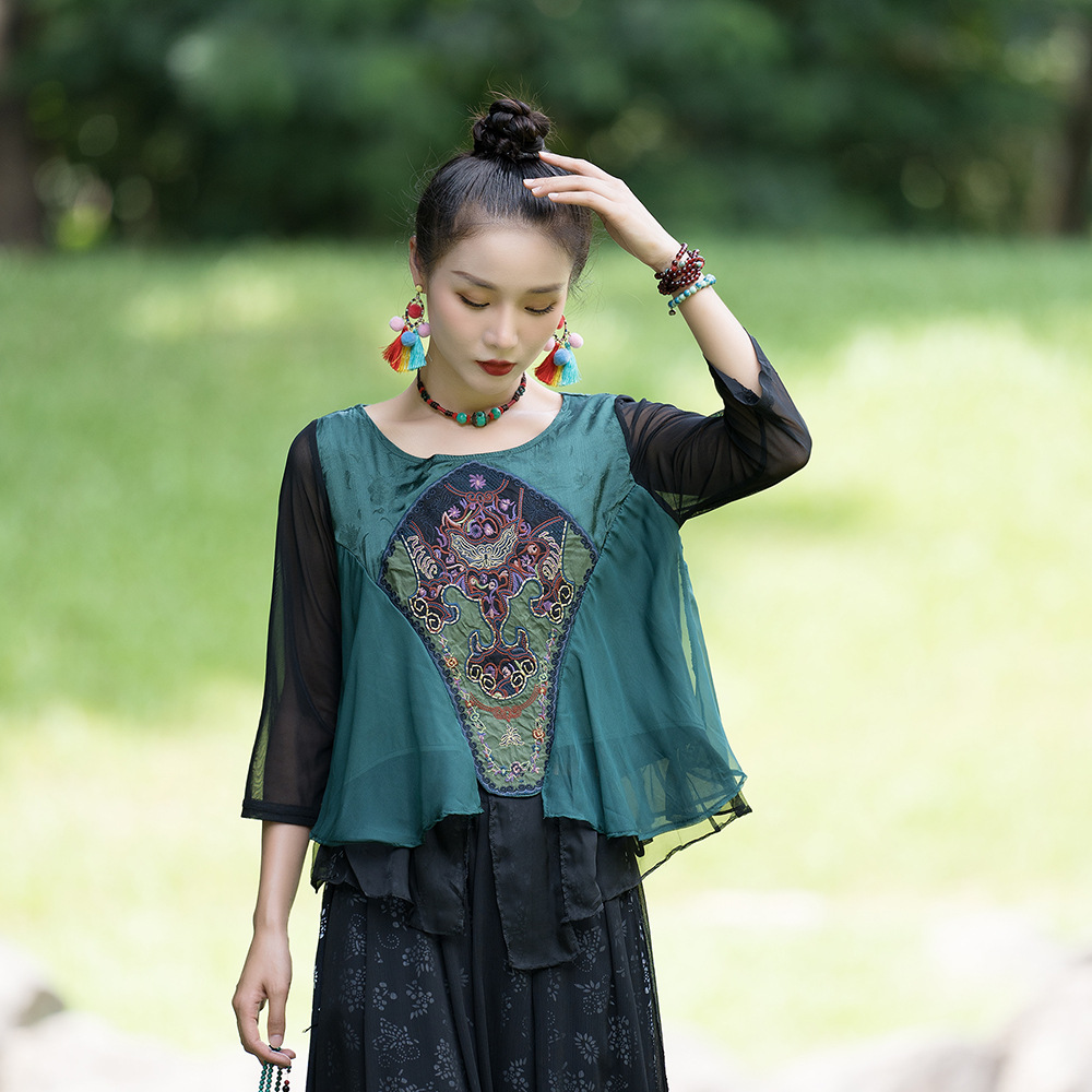 | nameOriginal | 2023 spring and summer new ethnic style women's clothing Chinese retro heavy embroidery stitching three-quarter sleeve improved Tang suit top |