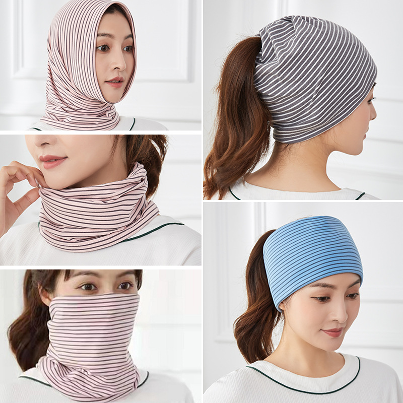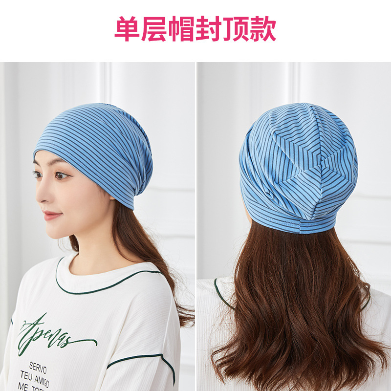 2023 spring and summer new one towel multi-use pile cap de velvet color striped maternity cap postpartum warm moon cap