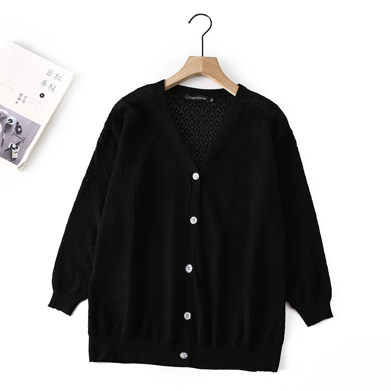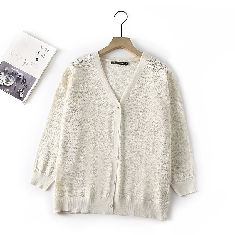 | nameOriginal | 2023 spring and summer new thin small coat 200 pounds fat mm ice silk hollow three-quarter sleeves large size knitted cardigan |
