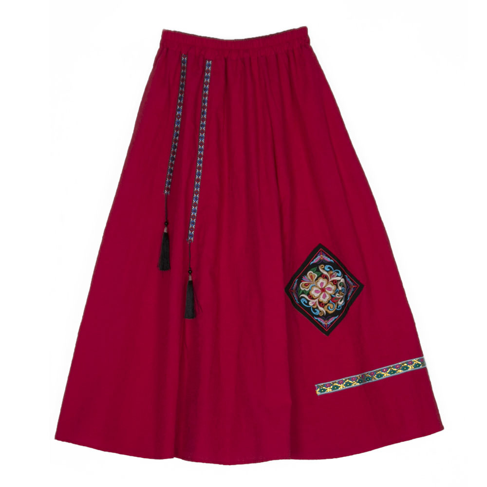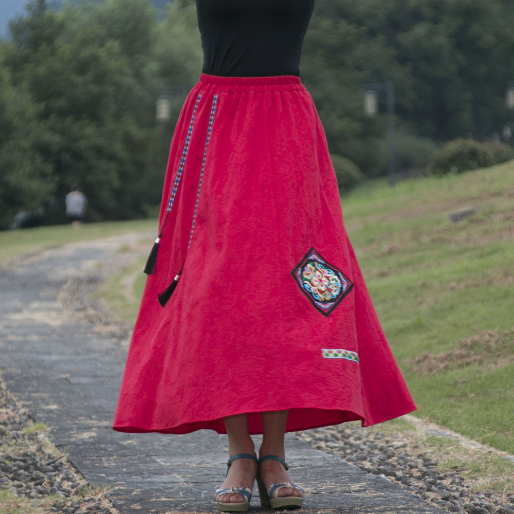 2023 Spring and Summer New Women’s Clothing Ethnic Style Jacquard Cotton Linen Fabric Chinese Style Retro Embroidered Skirt Retro Slimming