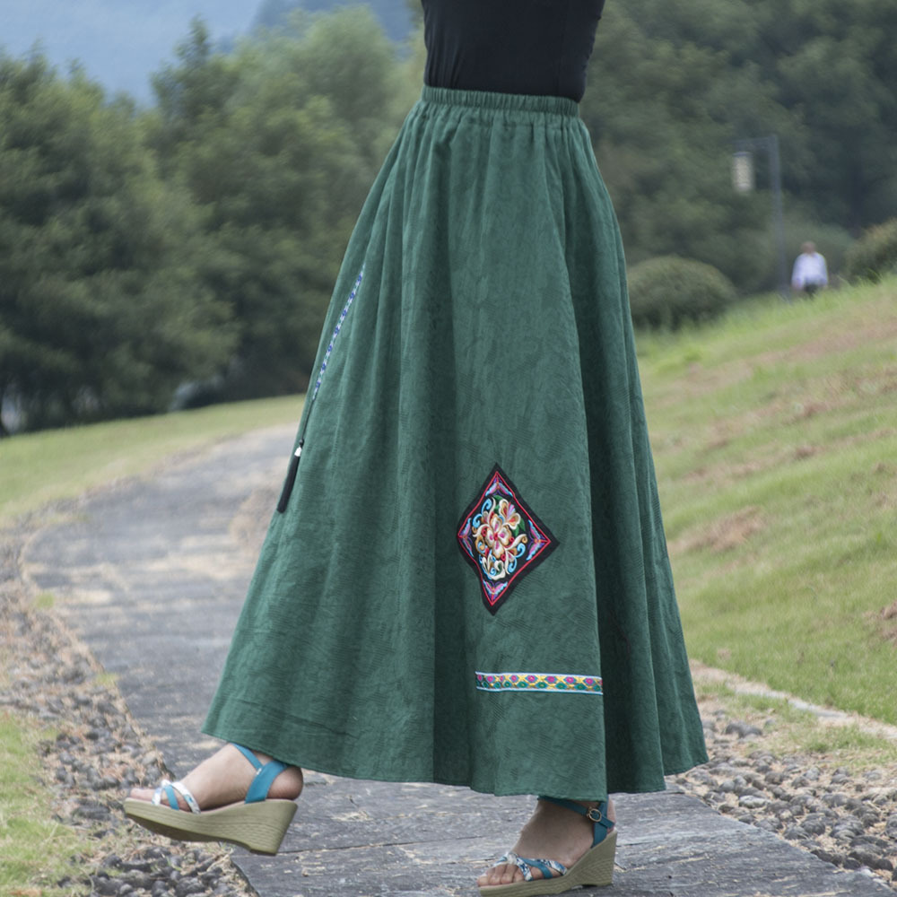 2023 Spring and Summer New Women's Clothing Ethnic Style Jacquard Cotton Linen Fabric Chinese Style Retro Embroidered Skirt Retro Slimming