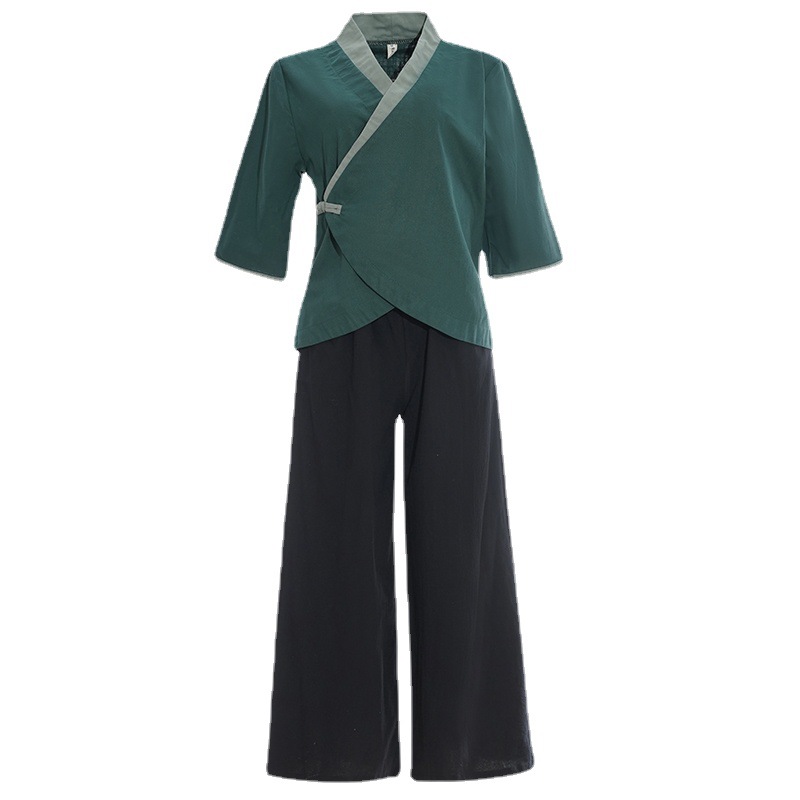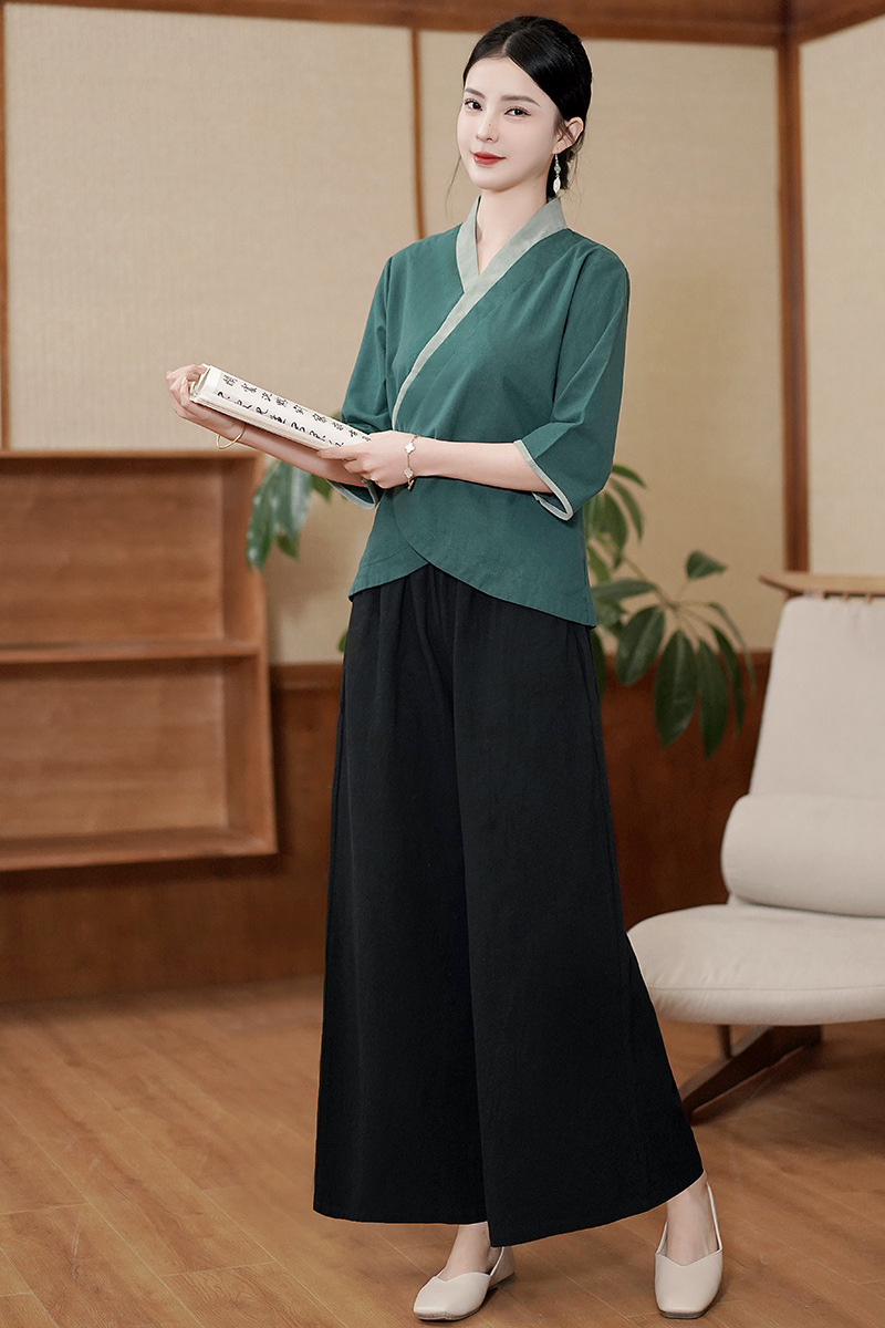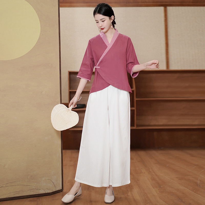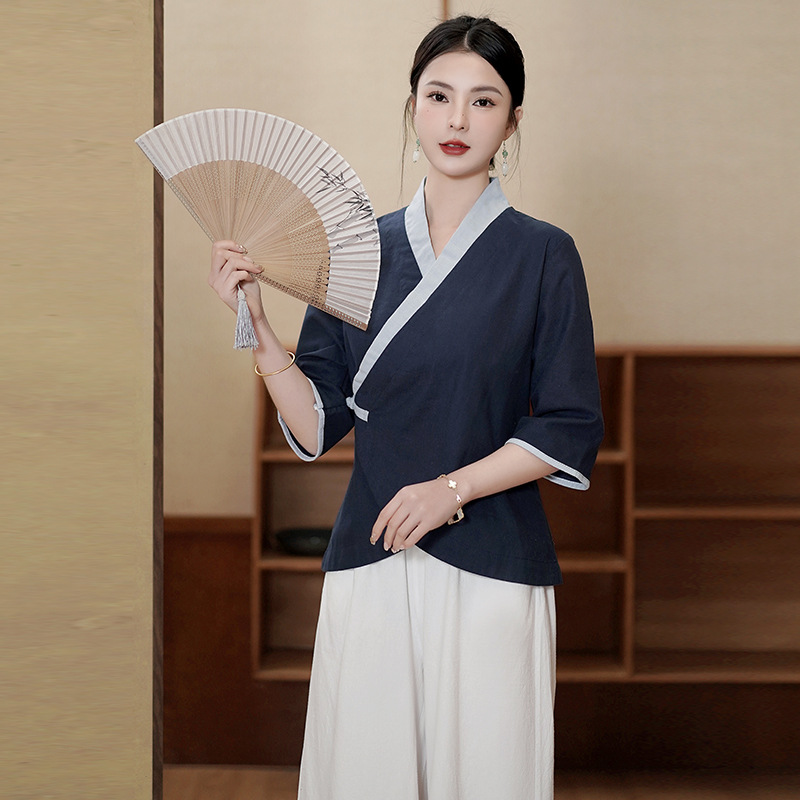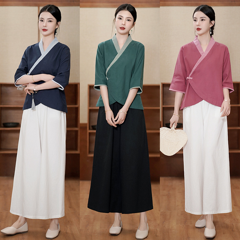 | nameOriginal | 2023 spring and summer retro Chinese style improved young artistic Zen tea clothes three-quarter sleeve top suit women |