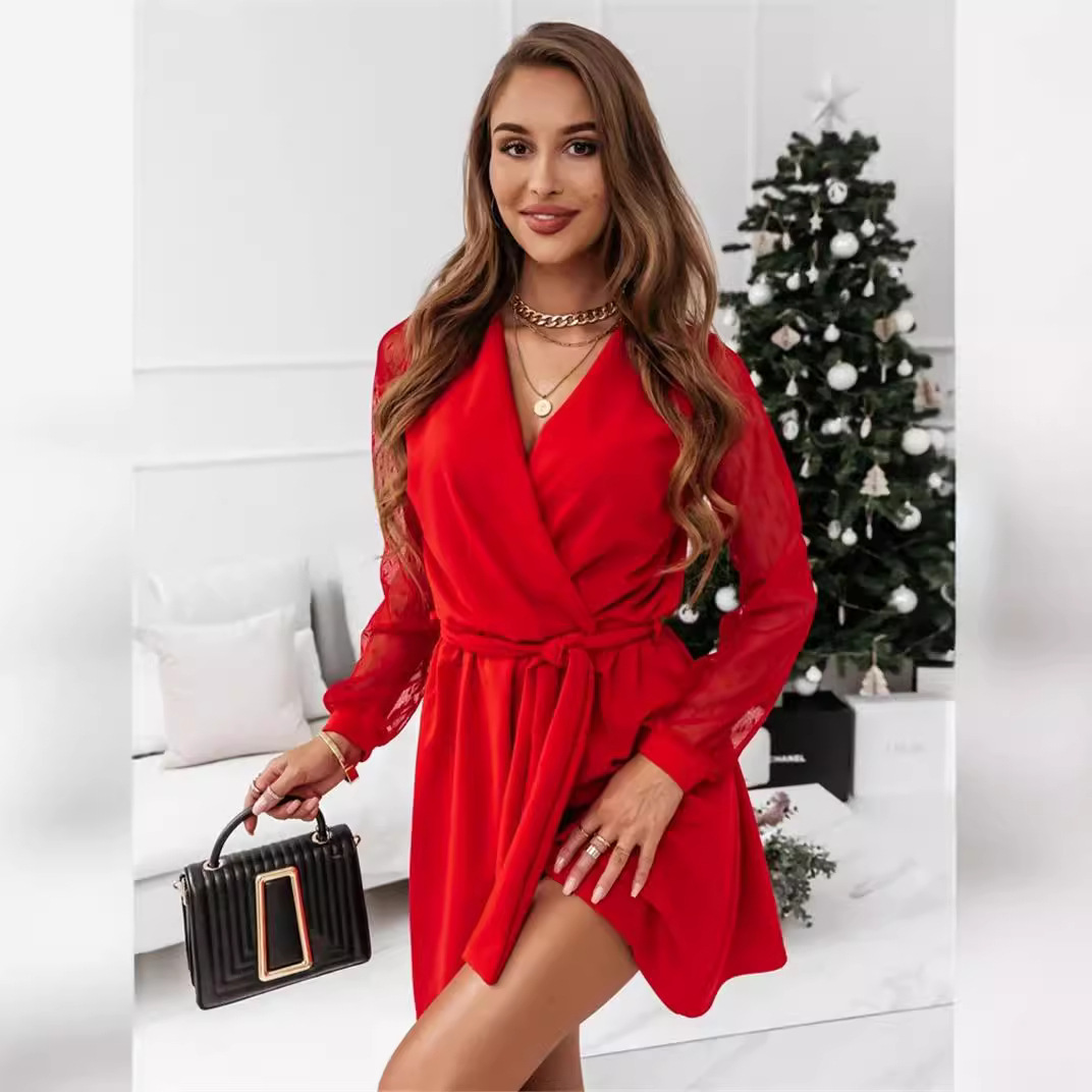 | nameOriginal | 2023 spring new cross-border foreign trade Amazon European and American lace long sleeve V-neck dress women's elegant dress |