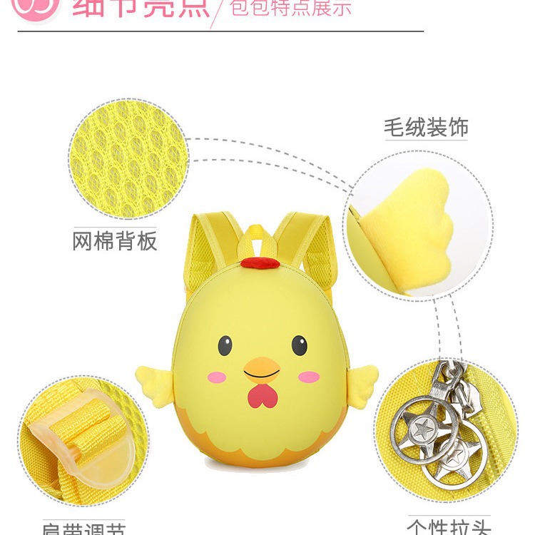 | nameOriginal | 2023 spring new Korean style big chicken cartoon shape children's schoolbag MINI lightweight kindergarten egg shell bag |