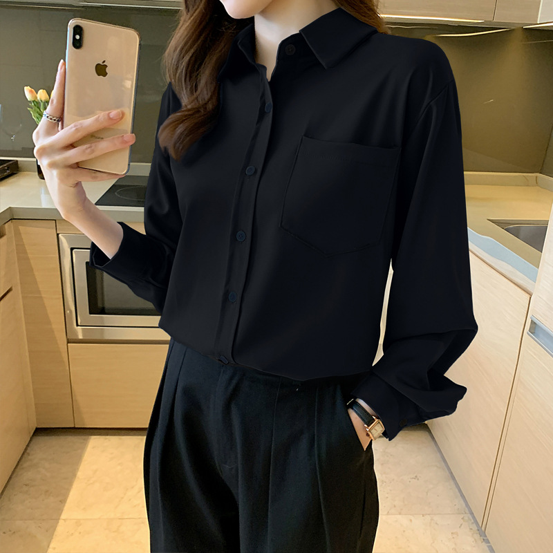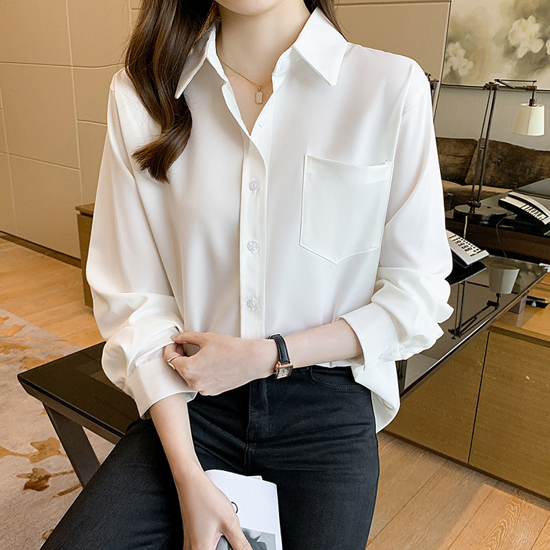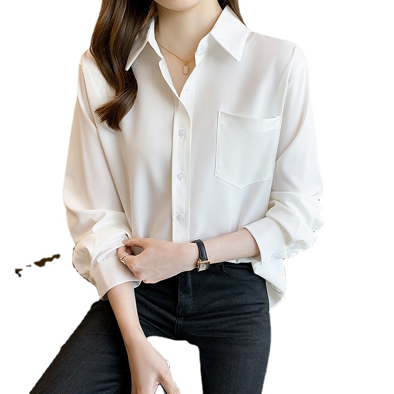 | nameOriginal | 2023 Spring New White Lapel Long Sleeve Pocket Shirt Women's Commuter Professional Work Clothes Loose Solid Color Top |