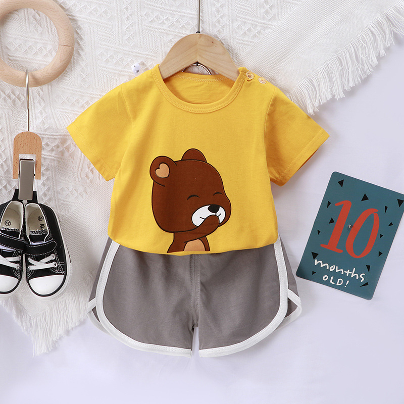 | nameOriginal | 2023 Summer 0-5 years old children's short sleeve suit boys and girls T-shirt shorts baby clothes thin factory wholesale |